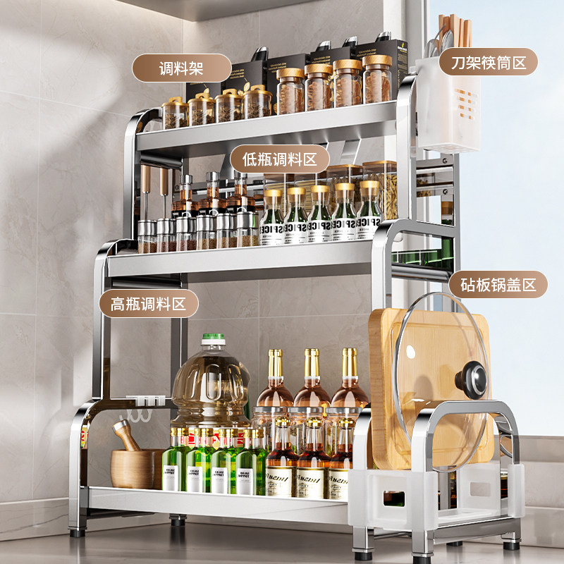 📚 不锈钢调料品置物架厨房家用台面多功能调味料筷勺子刀具收纳架子