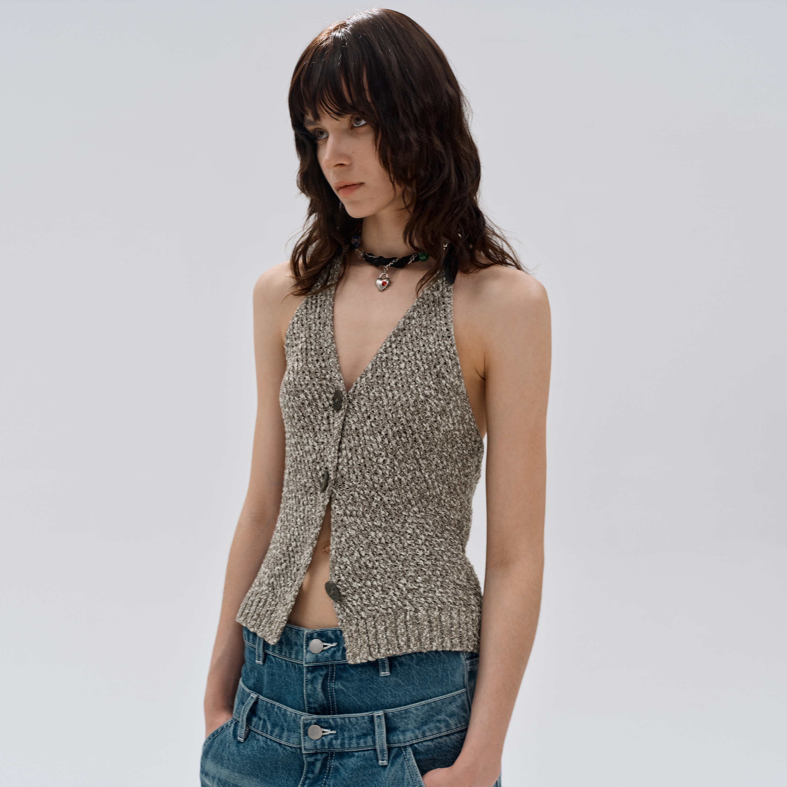 📚 【宅女同款】immune system 原创可调节背心挂脖皮带露背毛织吊带