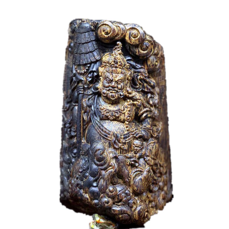 📚 财宝天王沉香手工雕刻挂件文莱黄财神木雕牌子收藏黑油沉水奇楠