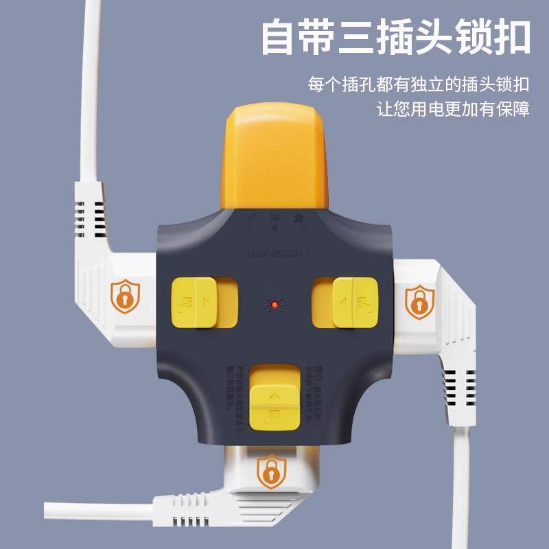 📚 拉不脱带锁插座地拖防脱工地插板不带线排插防脱落大功率自锁插线