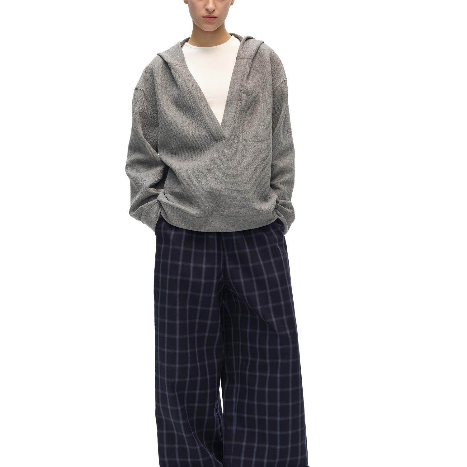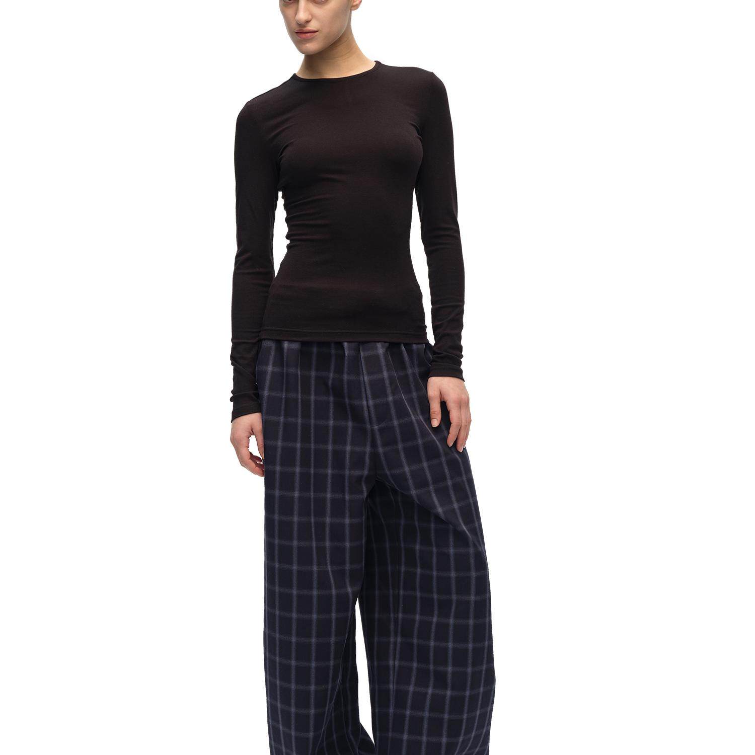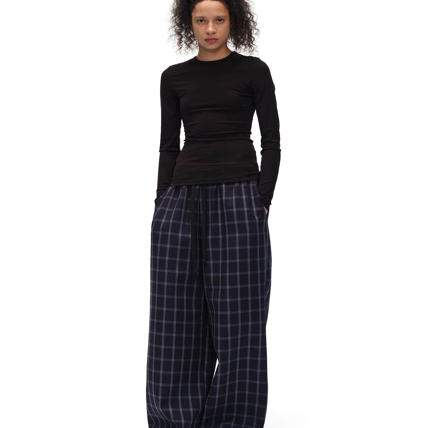📚 SILVERLOTUS 休闲深蓝色暗纹格子裤抽绳直筒裤四季款