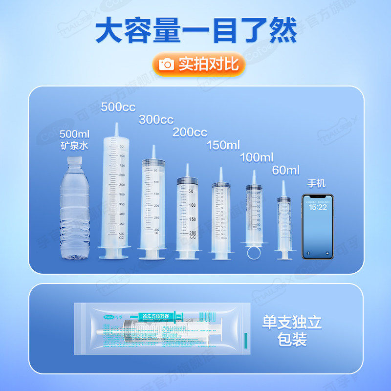 📚 可孚医用流食助推器喂食猫咪喂药灌肠鼻饲大号针筒针管注射一次性