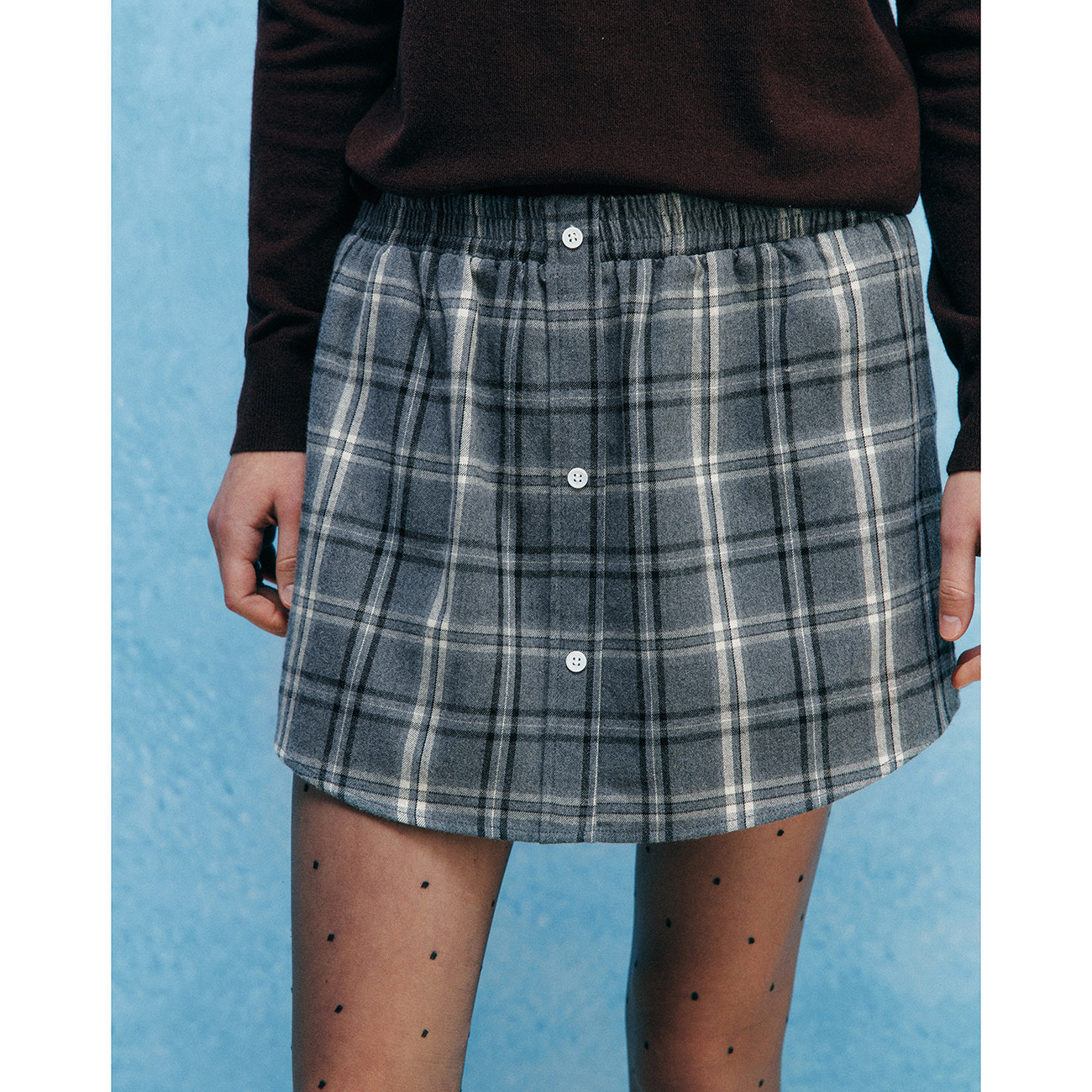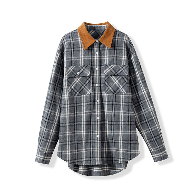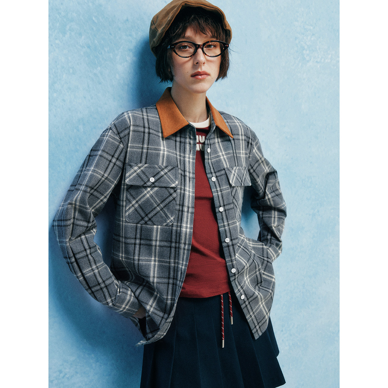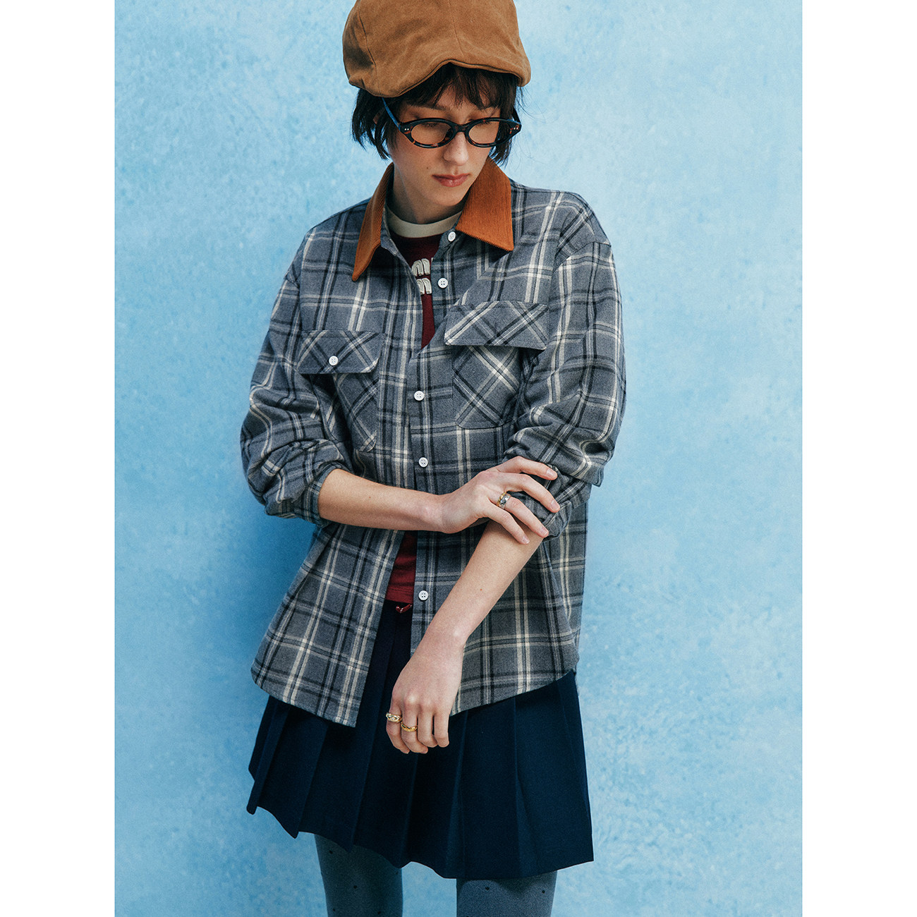 📚 【复古学院】高支精梳棉 灯芯绒翻领法兰绒磨毛格子衬衫+半裙套装
