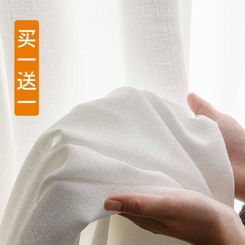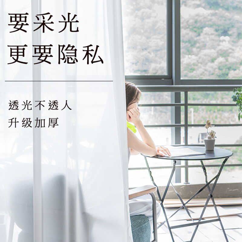 📚 2021流行加厚乱麻纱帘透光不透人白纱帘阳台纱客厅半遮光窗纱窗帘