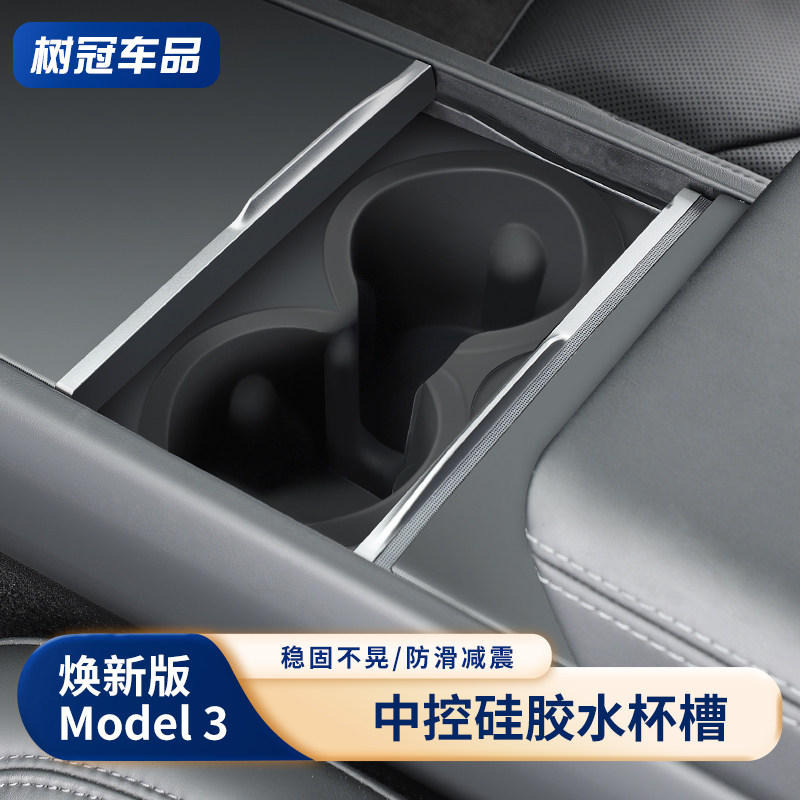 📚 适用特斯拉ModelY/3焕新版水杯限位器中控杯架槽垫硅胶丫改装配件