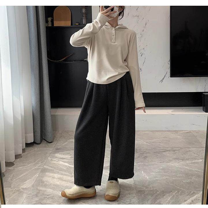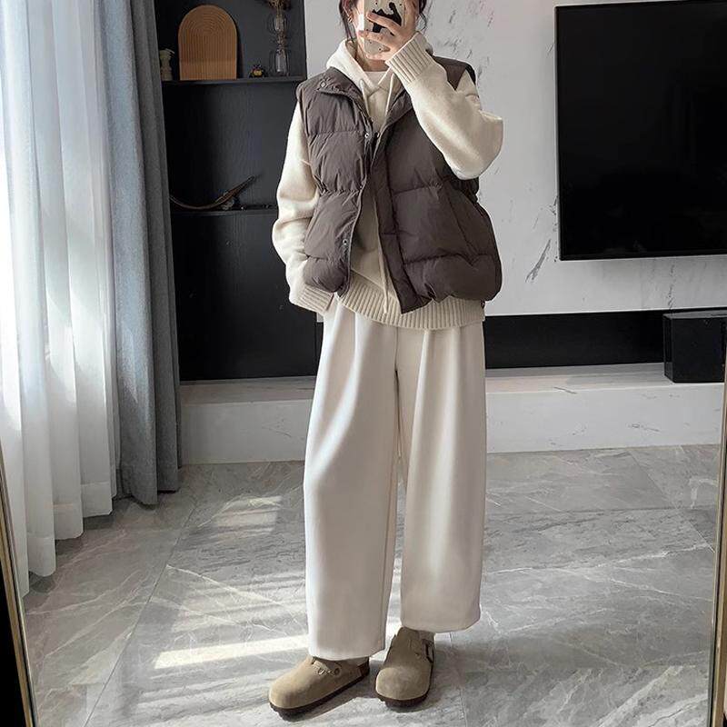 📚 小个子羊毛呢米白色阔腿裤女秋冬香蕉休闲直筒裤加绒奶奶裤萝卜裤