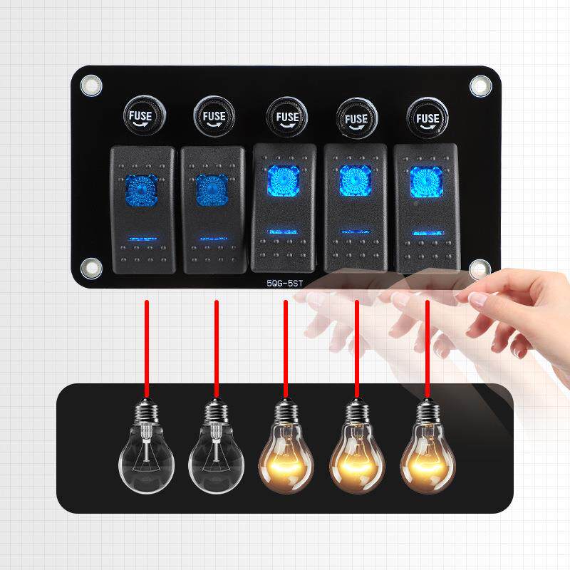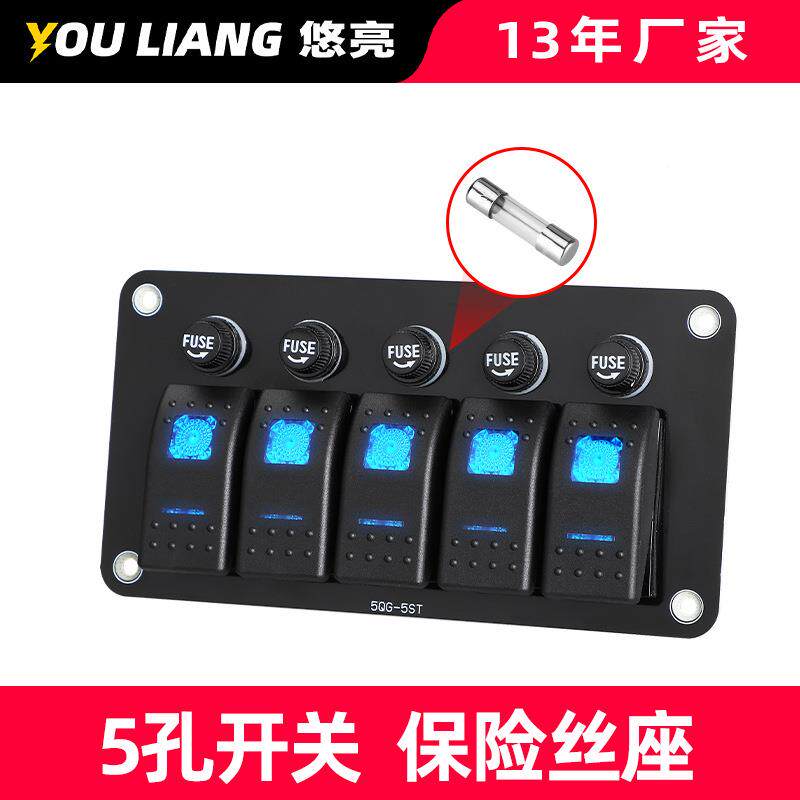 📚 NWQ5孔翘板开关面板带10A险座12保-2大4V灯房车载电源控制巴士丝