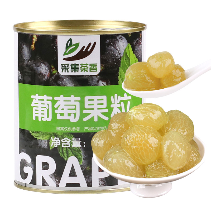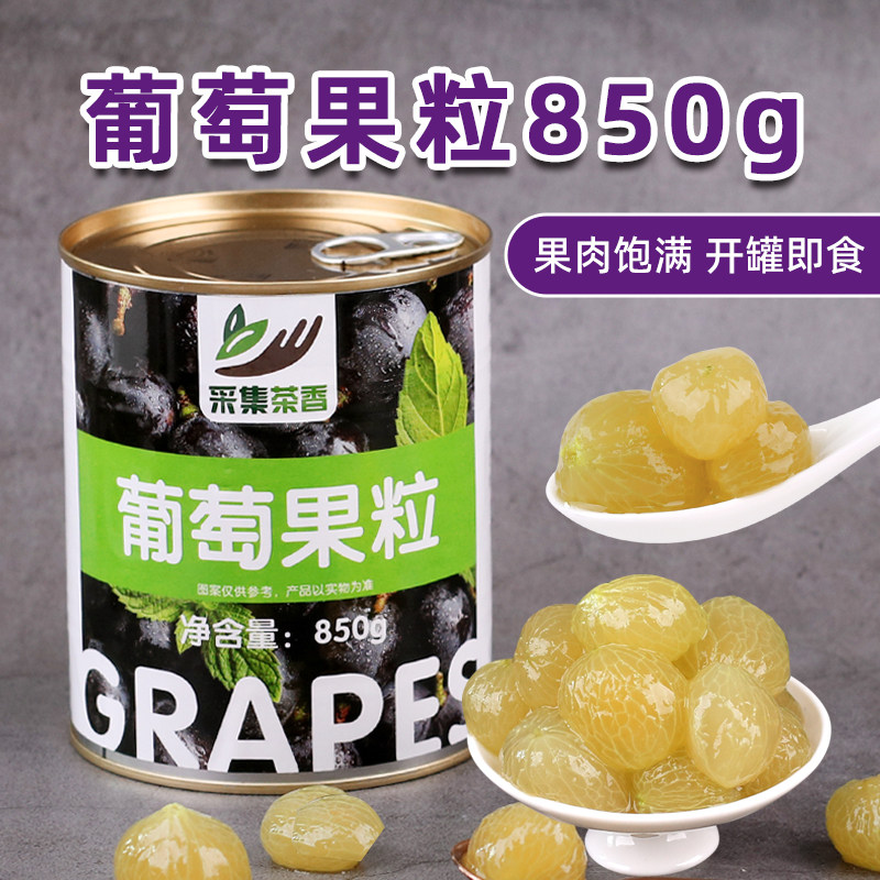📚 采集茶香850g葡萄果粒罐头水果肉糖水去皮多肉饮料专用奶茶店原料