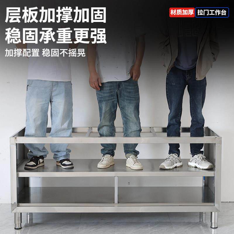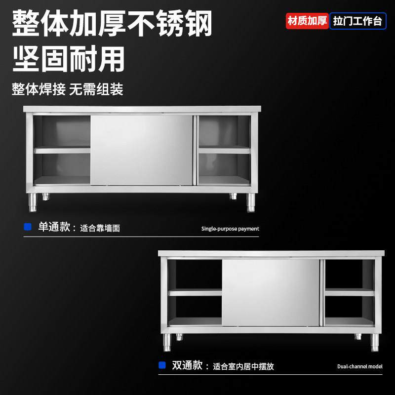 📚 焊接不锈钢工作台厨房操作台面储物柜商用烘焙切菜桌子带拉门案板