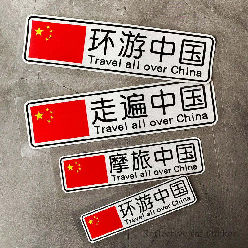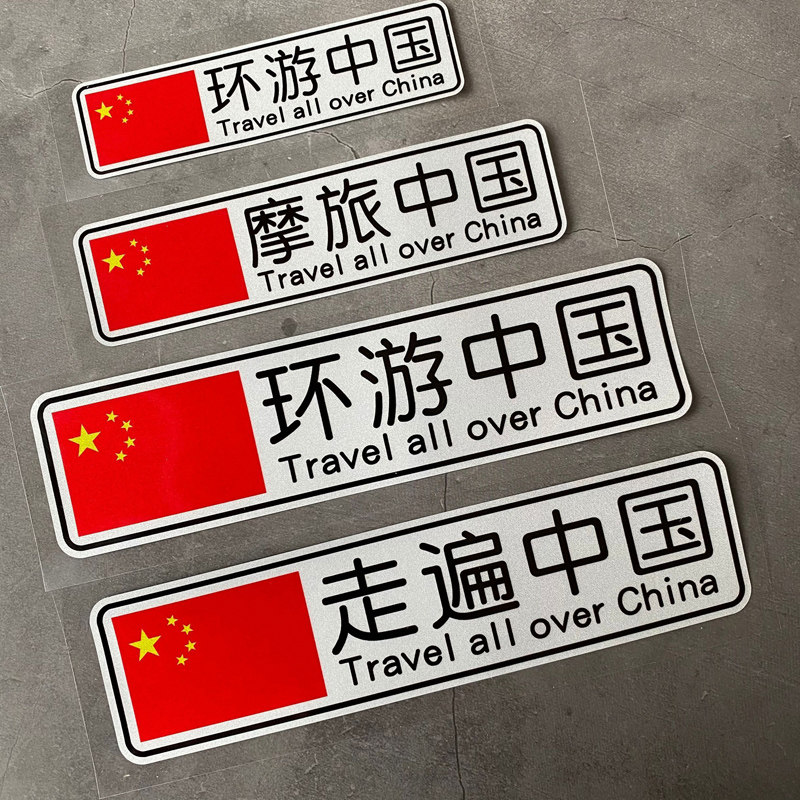 📚 环游中国走遍中国摩旅车贴个性创意电动摩托汽车装饰旅游反光贴