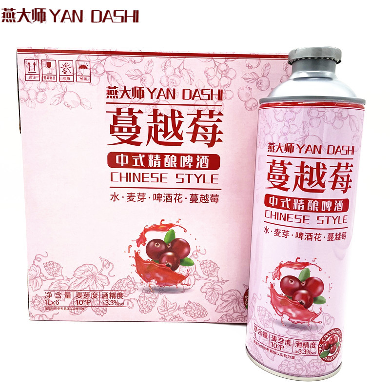 📚 燕大师啤酒一整箱1L*6罐青梅乌龙柠檬蔓越莓果味啤酒中式精酿啤酒