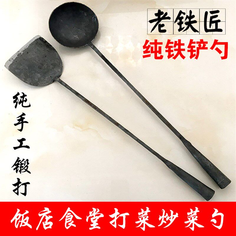 📚 手工锻打铁铲子k铁勺子饭店食堂炒勺大锅铲厨师铁铲铁勺一体铲