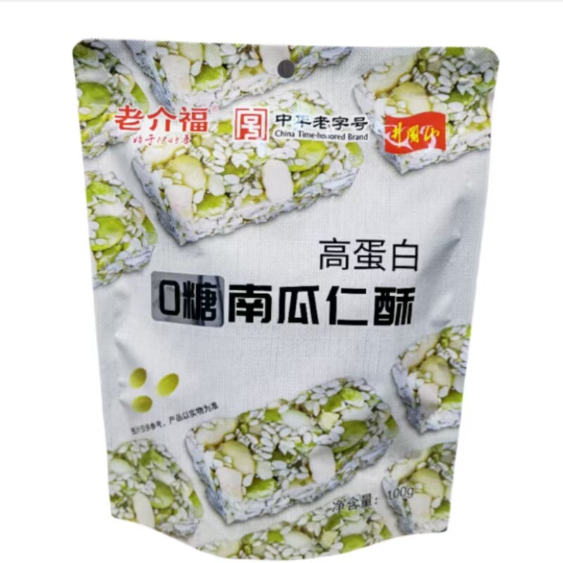 📚 老介福无糖南瓜仁酥100g*4袋香甜酥脆坚果仁切糕追剧零食点心茶点
