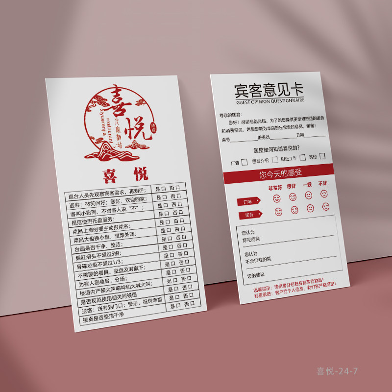 📚 餐厅顾客意见卡定制酒店服务卡片满意卡餐厅客户建议反馈贺卡印刷