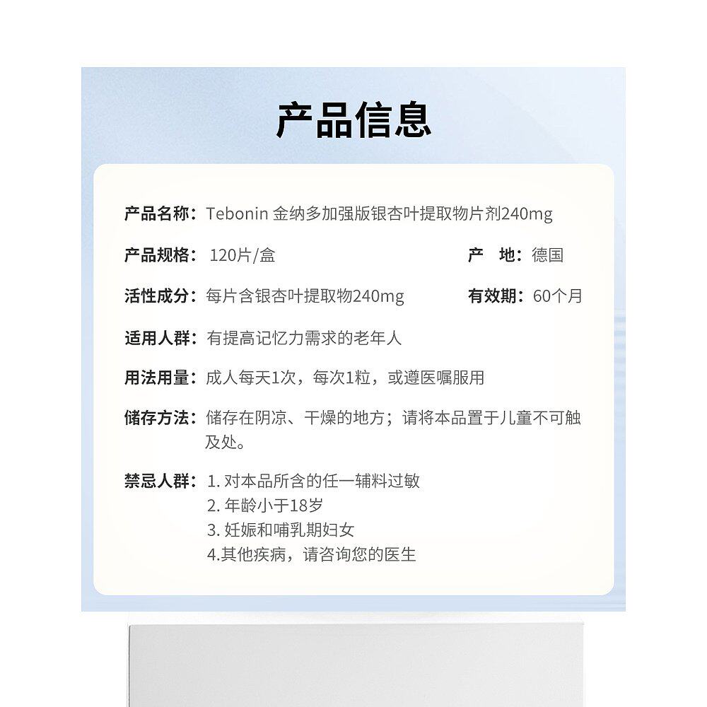 📚 香港直邮天保宁Tebonin金纳多加强版天然提取物片剂240mgx120片