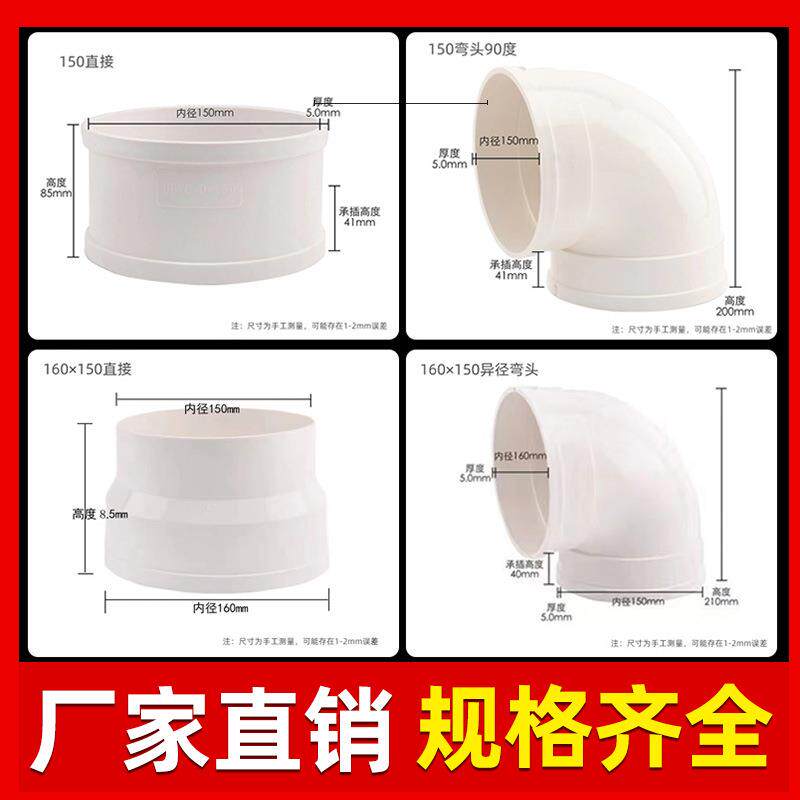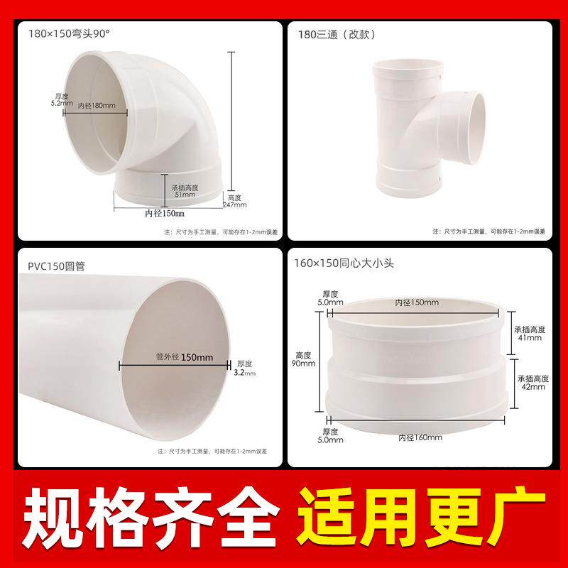 📚 PVC管150风管油烟机排烟管加厚排风 新风管 180弯头变径接头三通