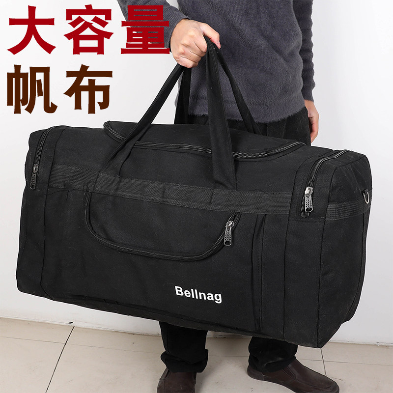📚 大容量厚帆布手提旅行包男款户外出装衣服折叠背包旅游务工行李袋