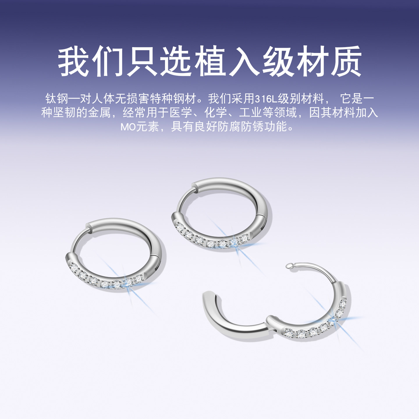 📚 养耳洞钛钢锆石素圈耳环女耳骨钉镶钻高级感耳圈耳扣耳钉睡觉免摘