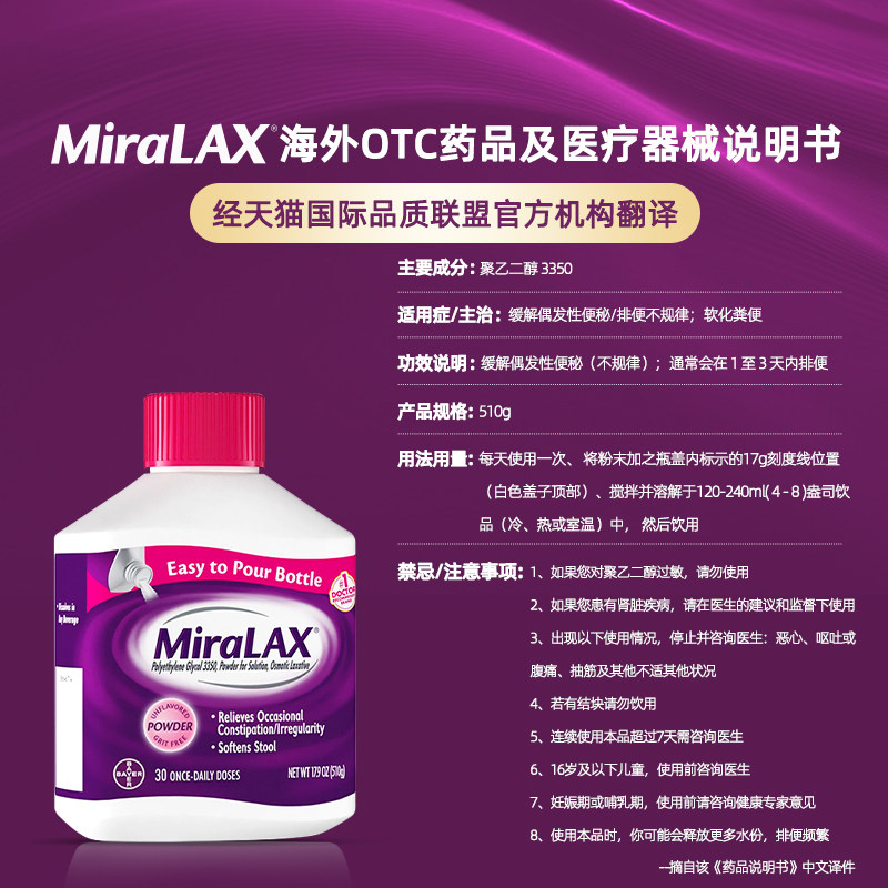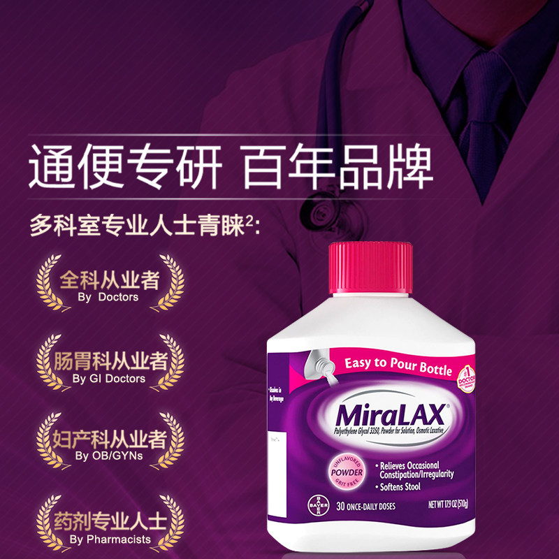📚 【自营】拜耳miralax通便粉聚乙二醇3350软化大便润肠道缓解便秘