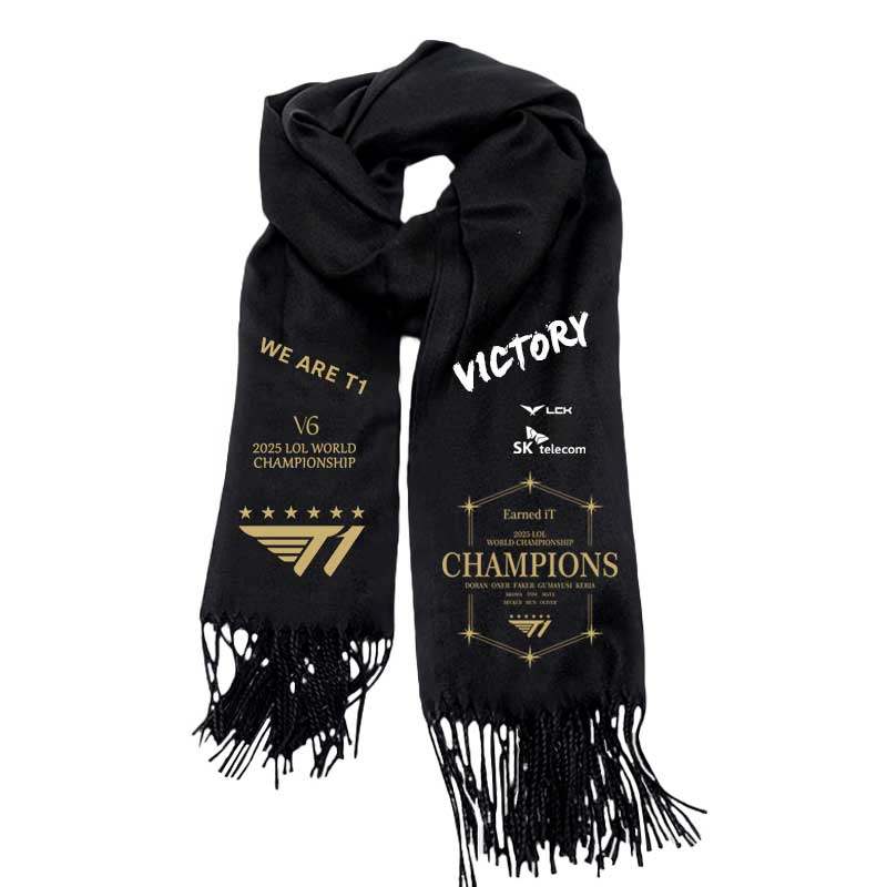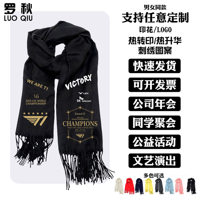 📚 T1战队S15总决赛夺冠军6六冠FAKER同款纪念队服围巾男女围脖披肩