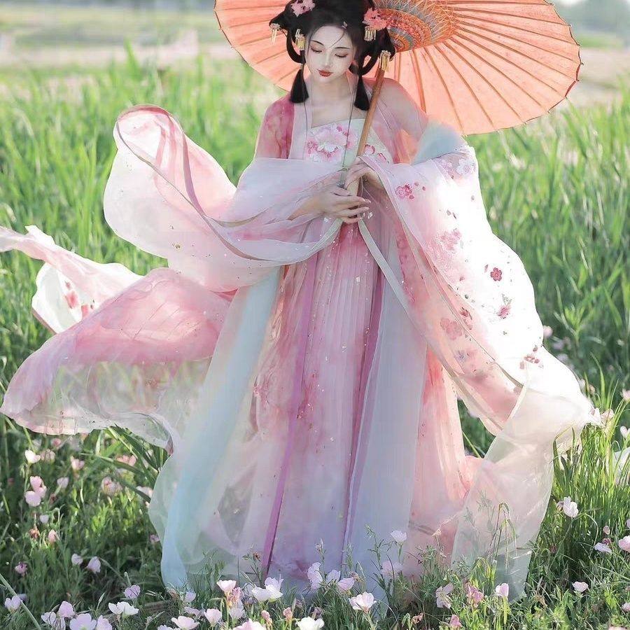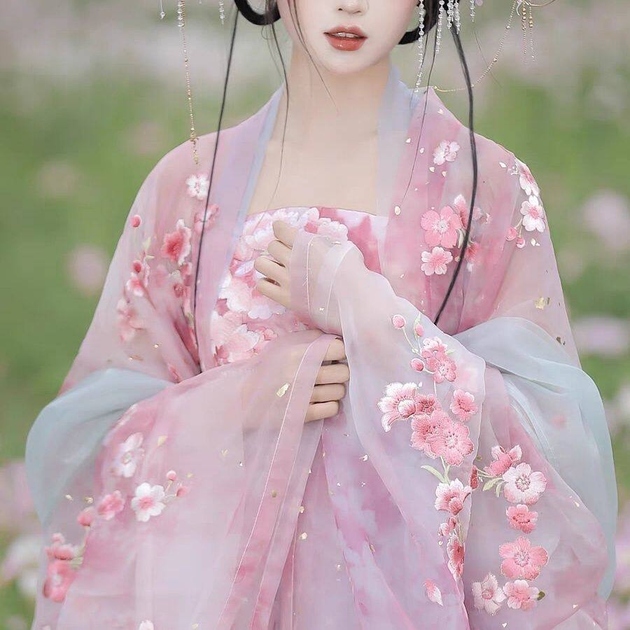 📚 十二花神樱花汉服女重工刺绣外超仙大袖渐变色柯子裙日常春夏秋款