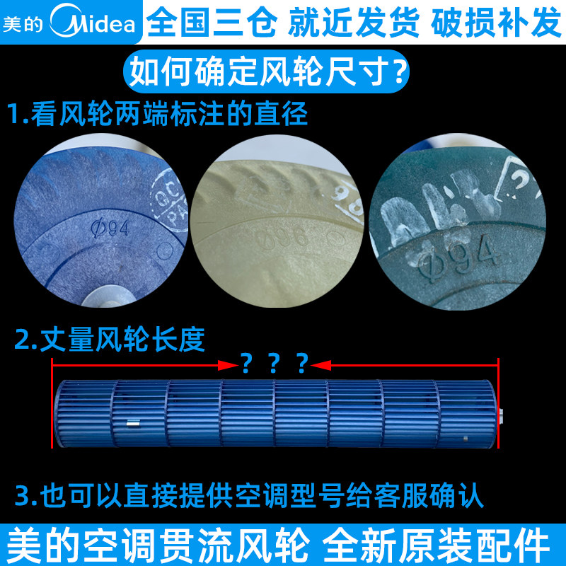 📚 美的空调风轮全新原装静音挂机柜机风管贯流风叶扇叶滚筒风筒包邮