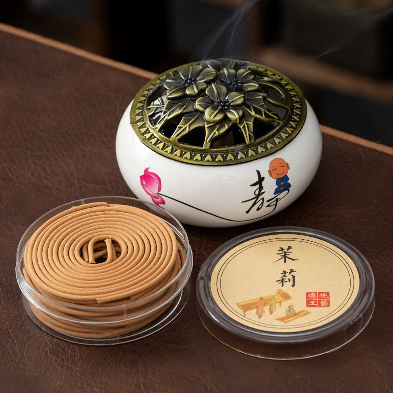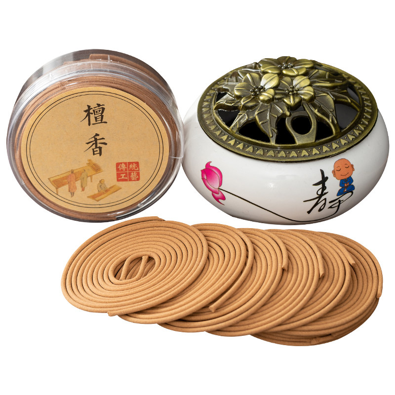 📚 天然檀香家用盘香艾草熏香炉沉香卧室空气清新卫生香厕所除臭香薰