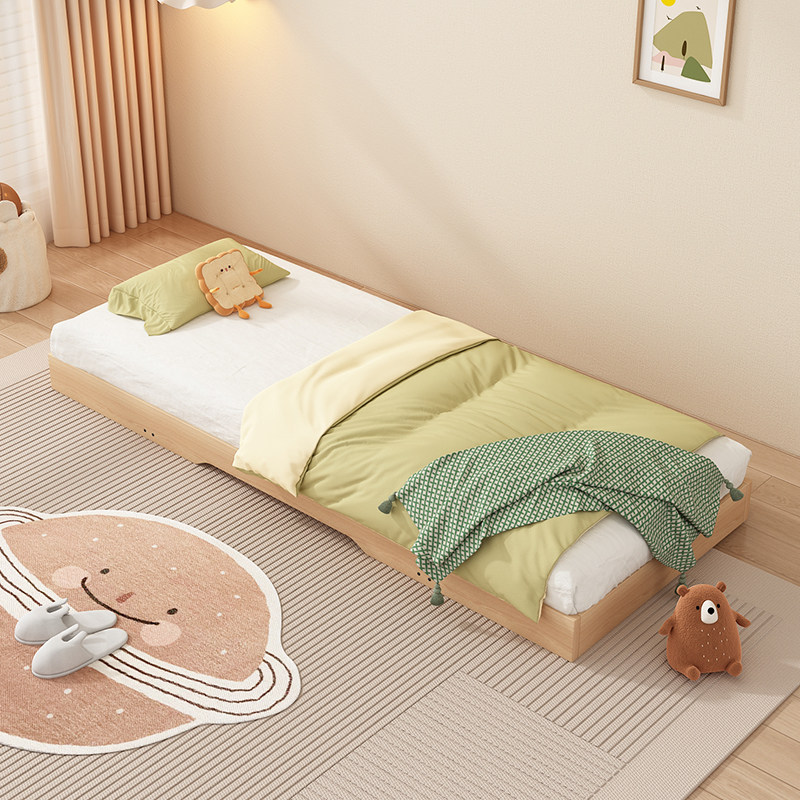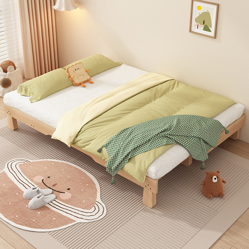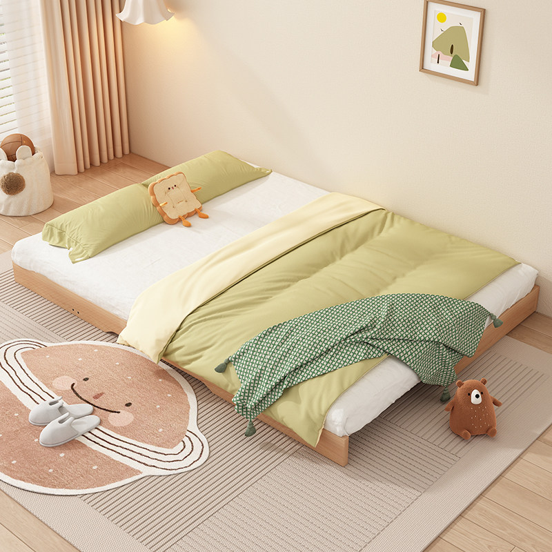 📚 榉木蒙氏儿童地台床卧室实木榻榻米抽拉床小户型可伸缩地板床定制