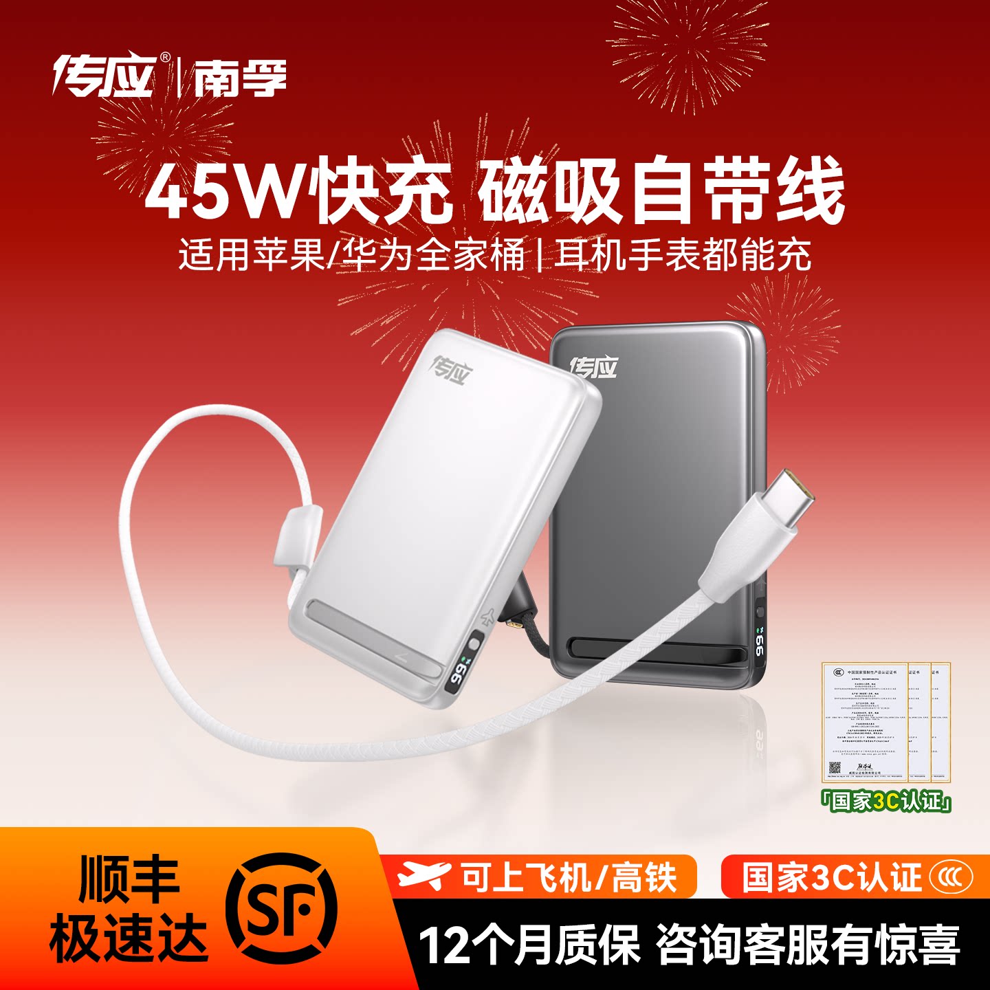🎉种草揭秘!南孚传应45W自带线磁吸无线充电宝,三合一多功能快充移动电源,你值得拥有!🔋
