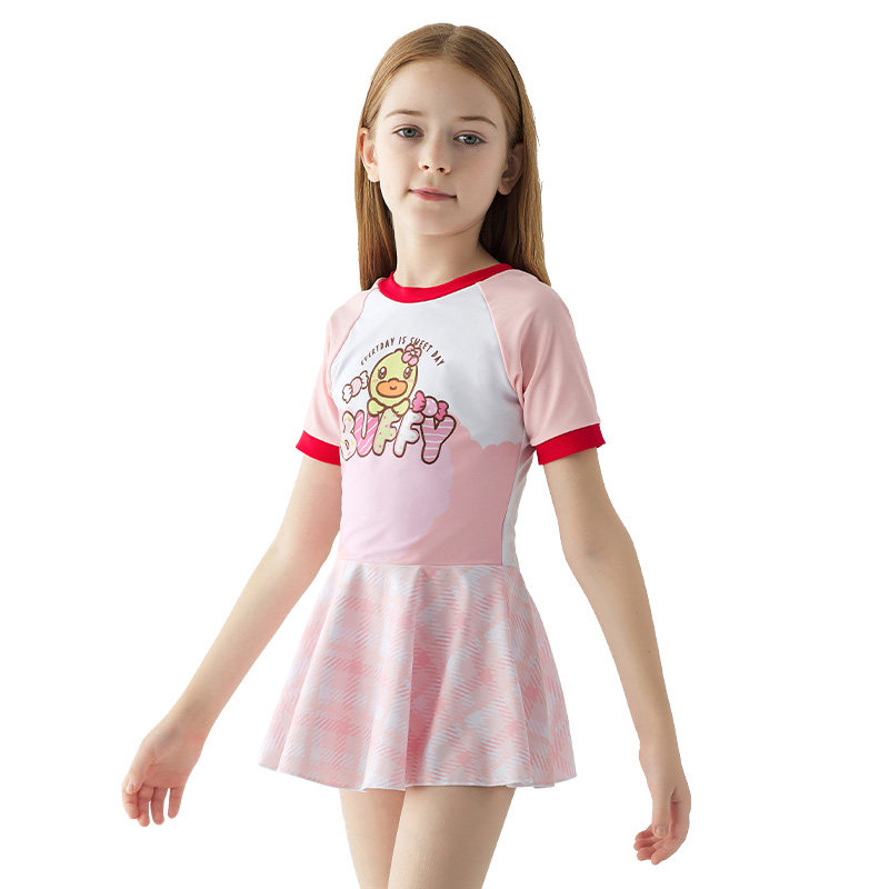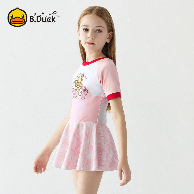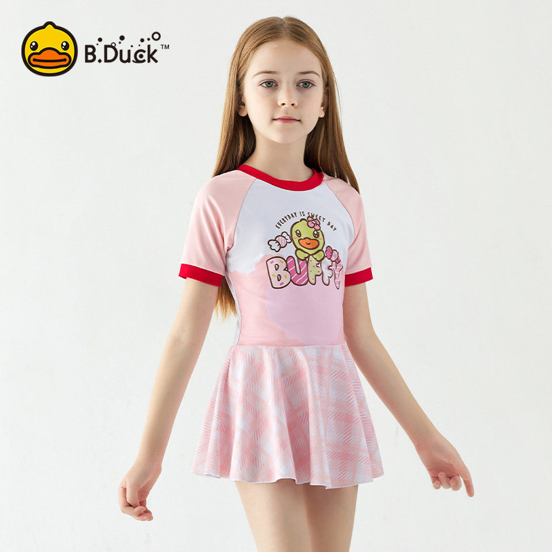 📚 B.Duck儿童泳衣连体新款女童元气粉公主裙中小童训练专用游泳衣