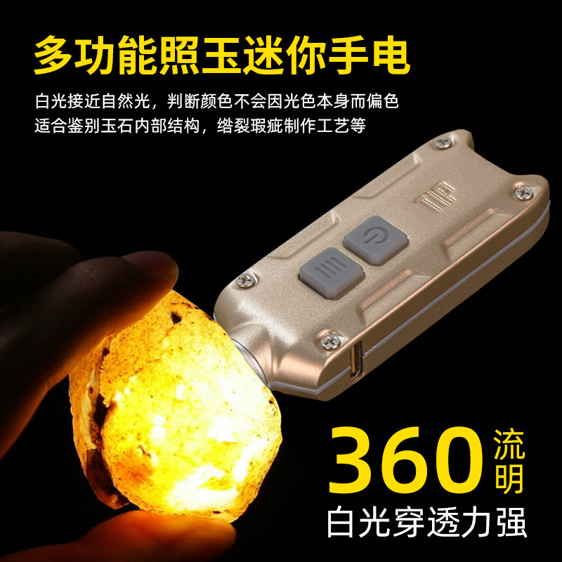 📚 NITECORE奈特科尔TIP小型迷你手电筒强光充电看玉钥匙扣灯便携型