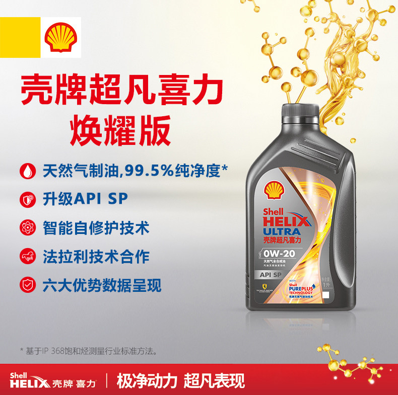 📚 壳牌机油0W-20 1L SP 超凡喜力焕耀新版全合成汽车润滑油灰壳0W20