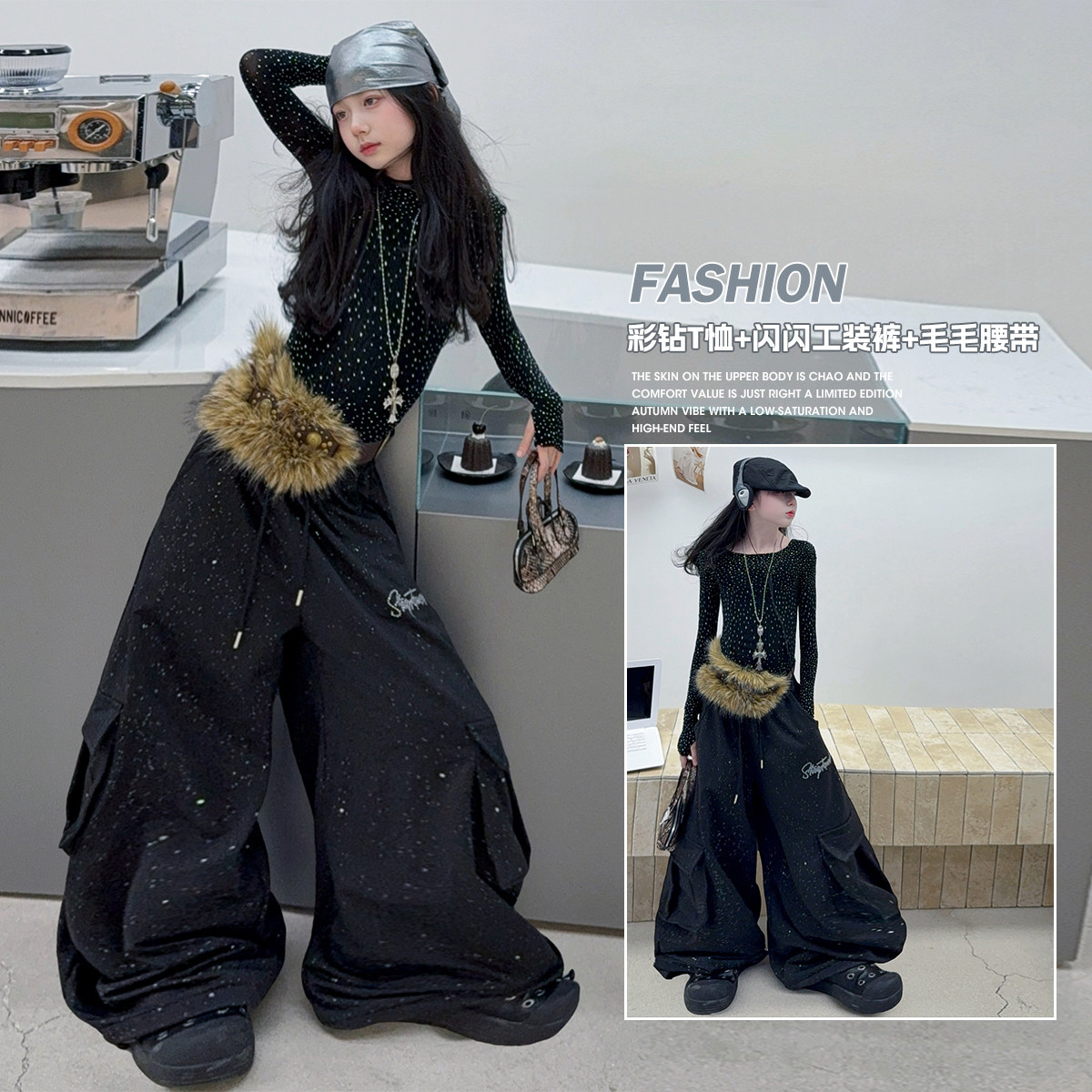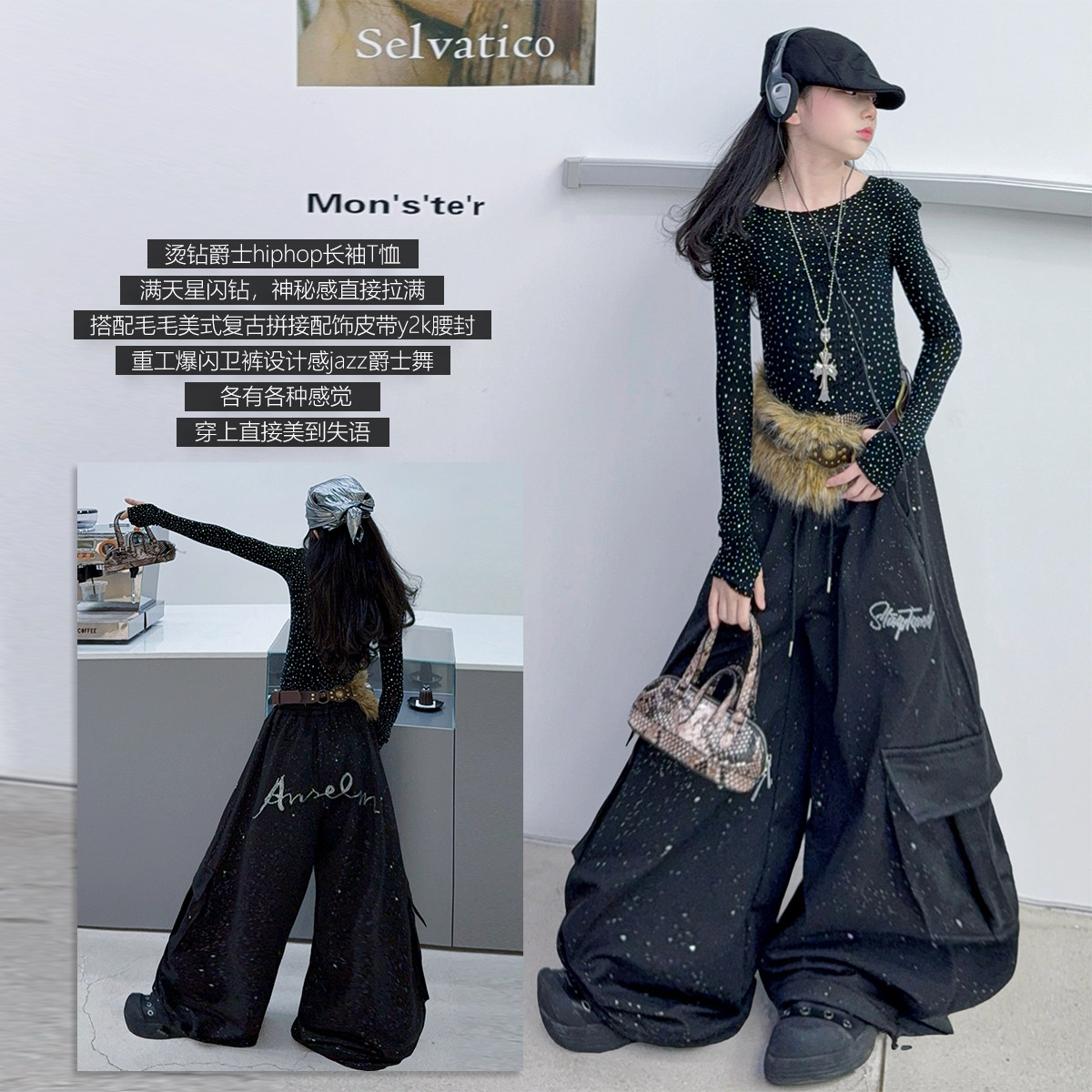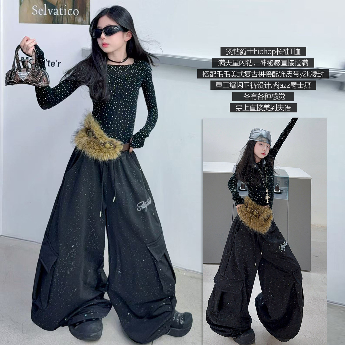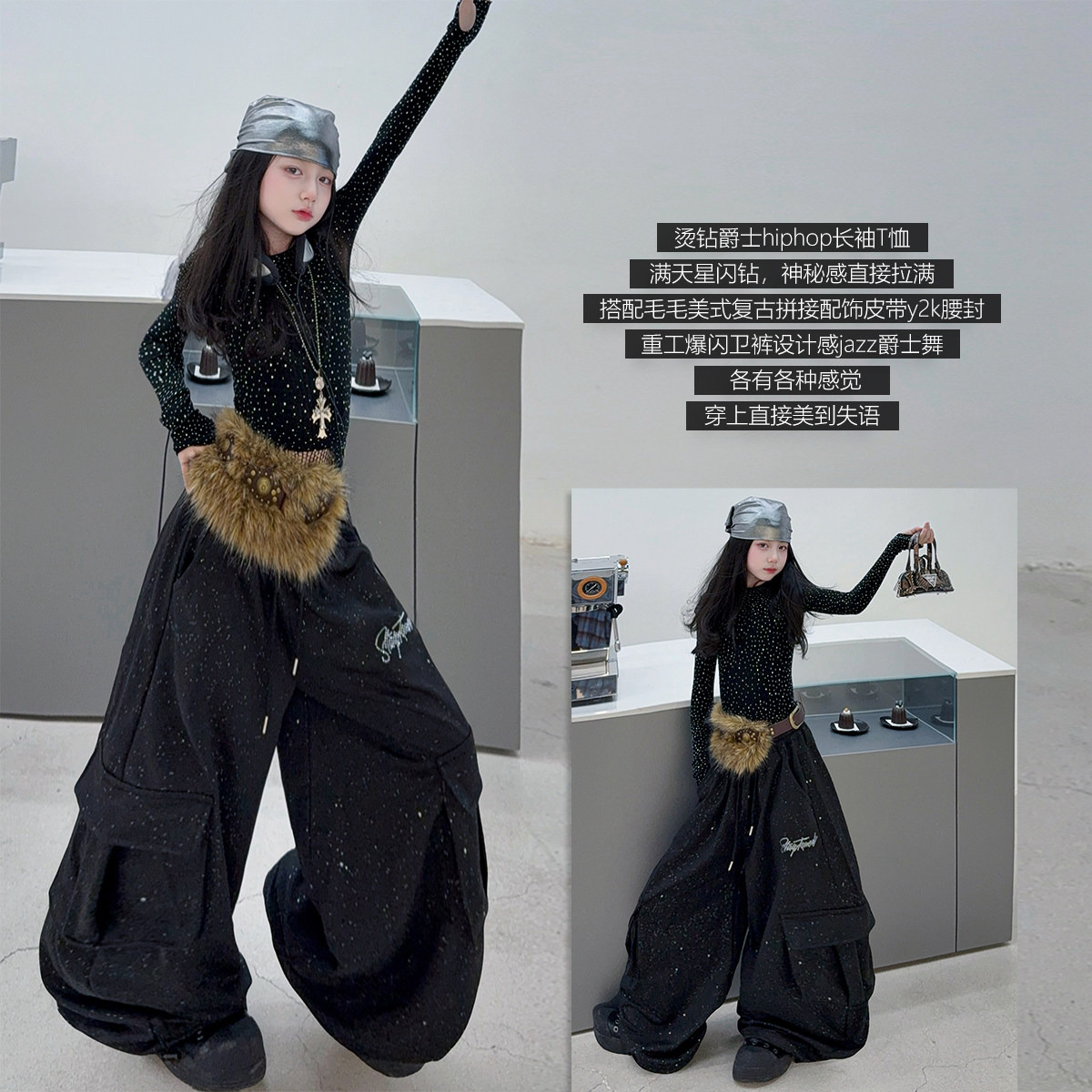 📚 爵士舞服装女童潮酷时髦儿童走秀服露脐烫钻辣妹装少儿演出服jazz