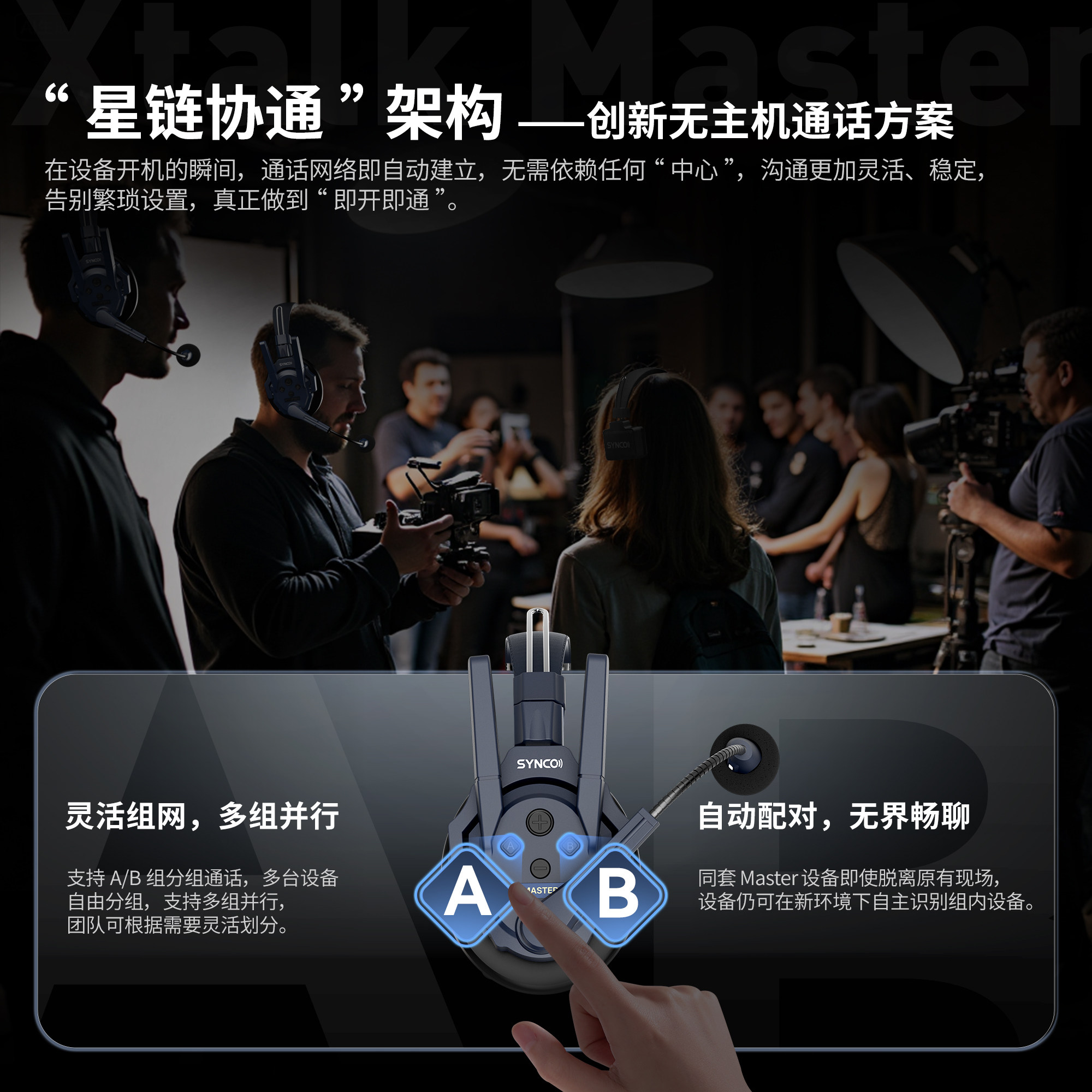 📚 SYNCO奉科声刻Xtalk Master 无线低延迟导播通话系统AI降噪耳机APP控制对讲机头戴三方内通超长续航舞美赛事