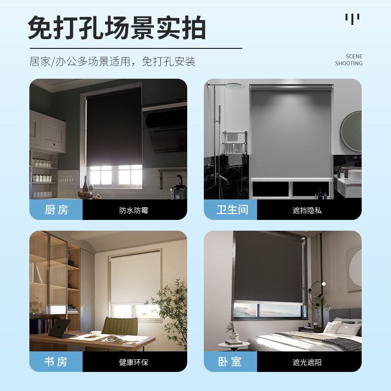 📚 免打孔遮光遮阳卷帘窗帘卫生间厨房遮挡防水升降卷拉式2026新款