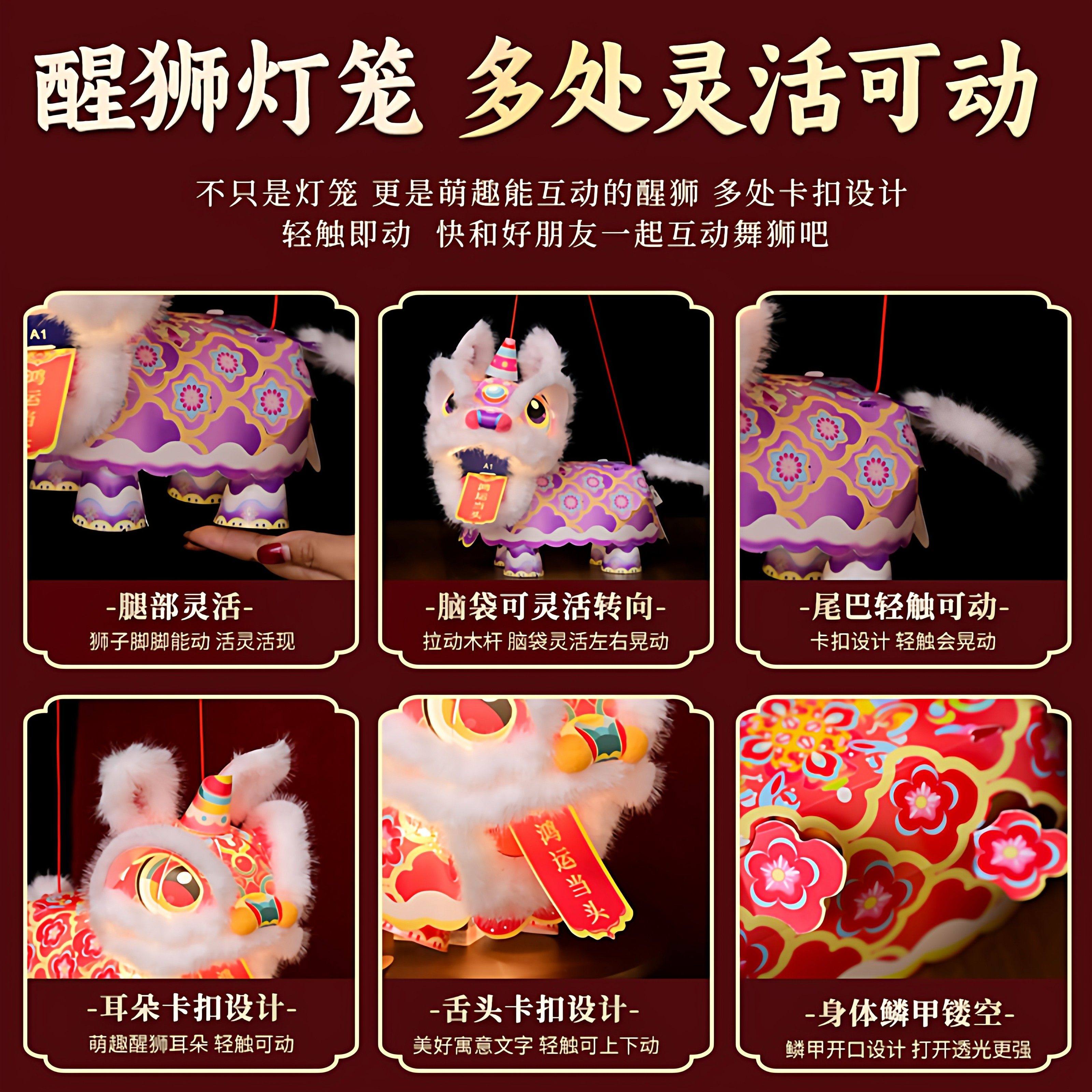 📚 新年春节元宵马年国潮醒狮灯笼手工diy儿童制作材料狮子花灯2026