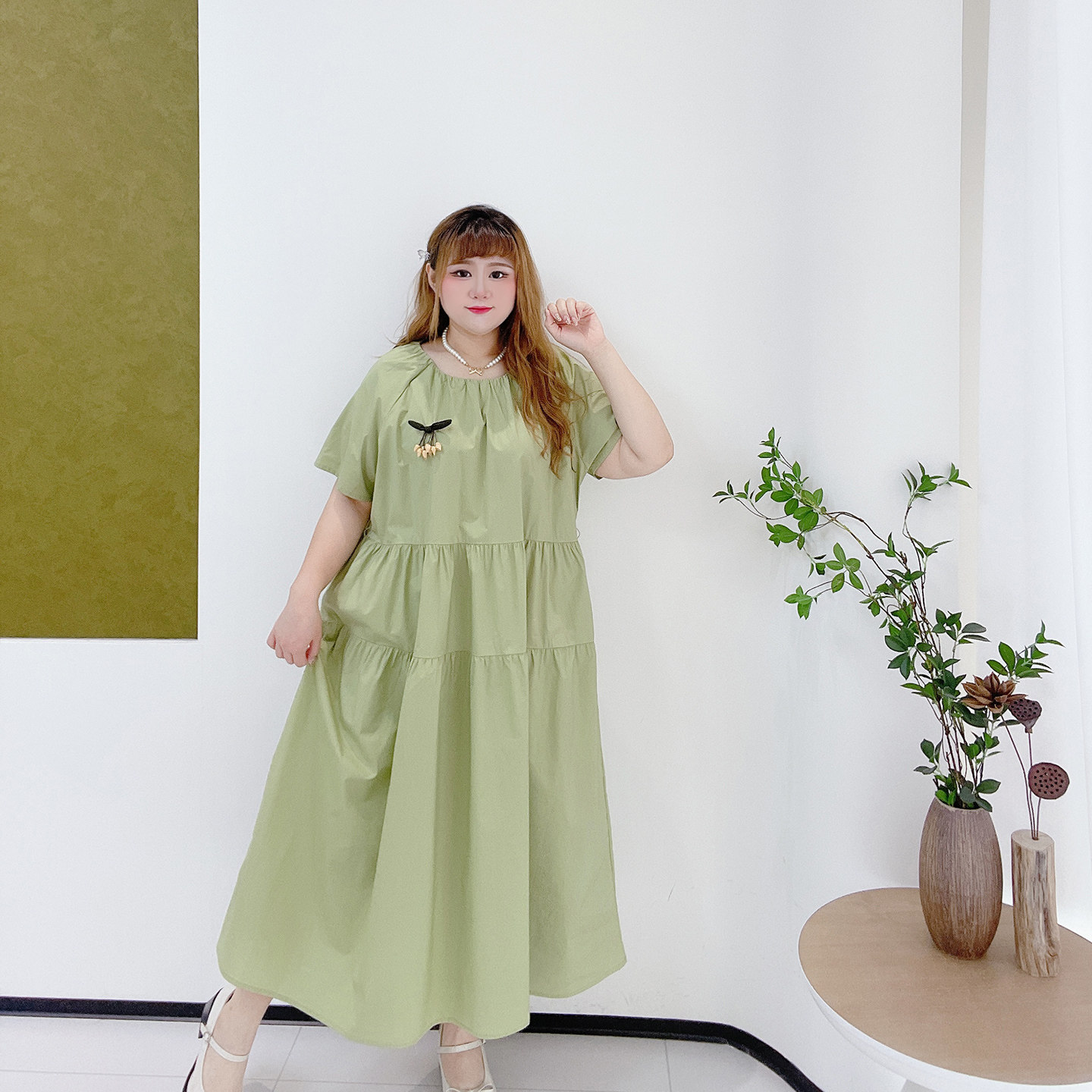 📚 胖莹莹大码女装300斤胖m日系清新森系花朵蛋糕长裙宽松显瘦连衣裙