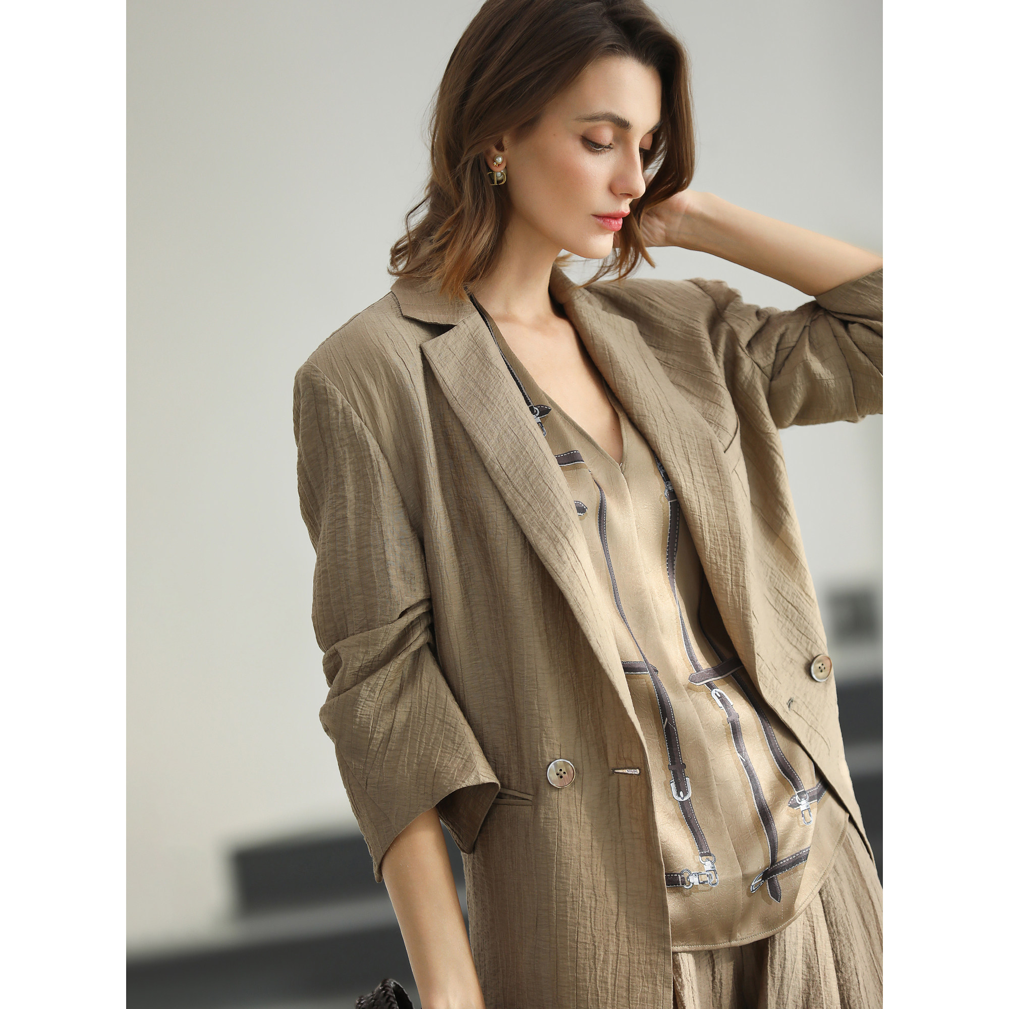 📚 COCOBELLA肌理莱赛尔西装女26春设计感多穿法廓肩外套SI0076