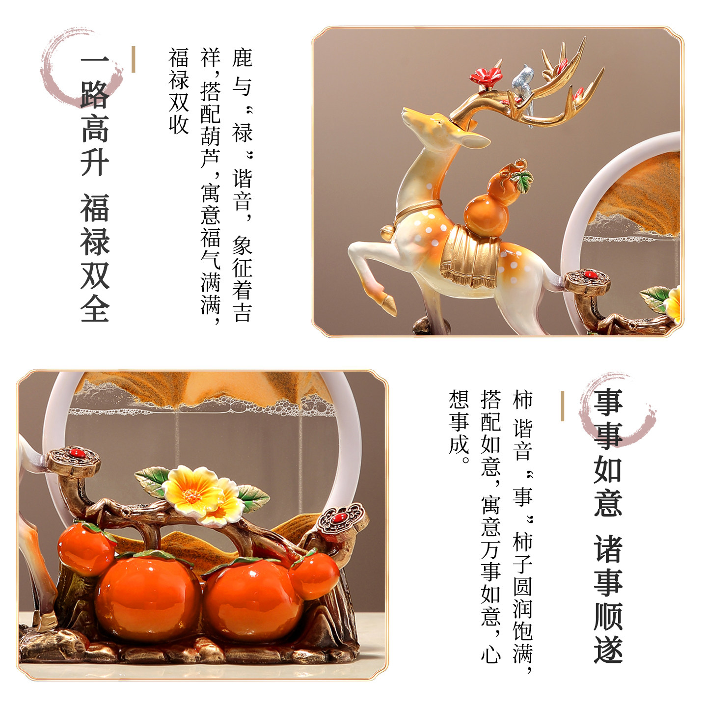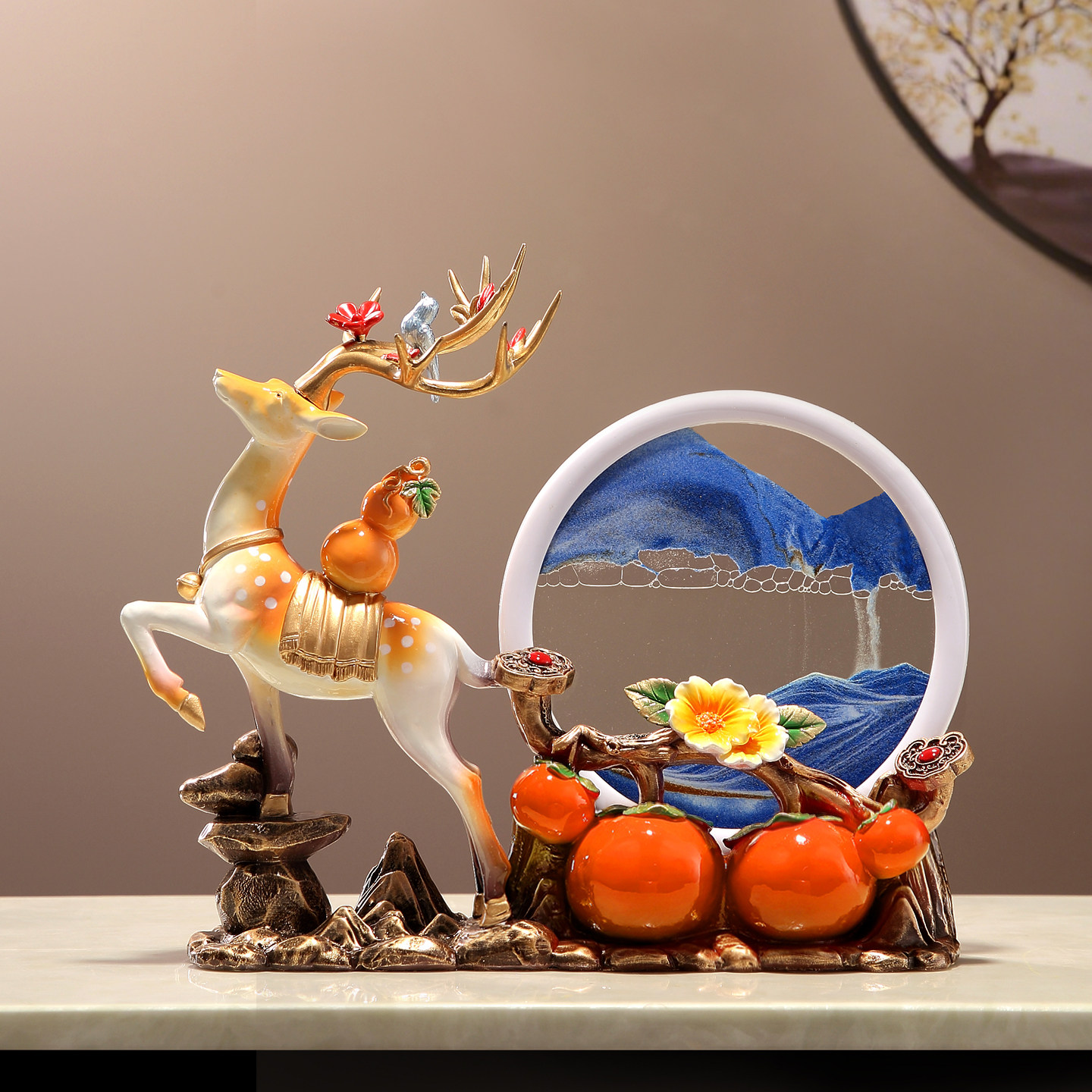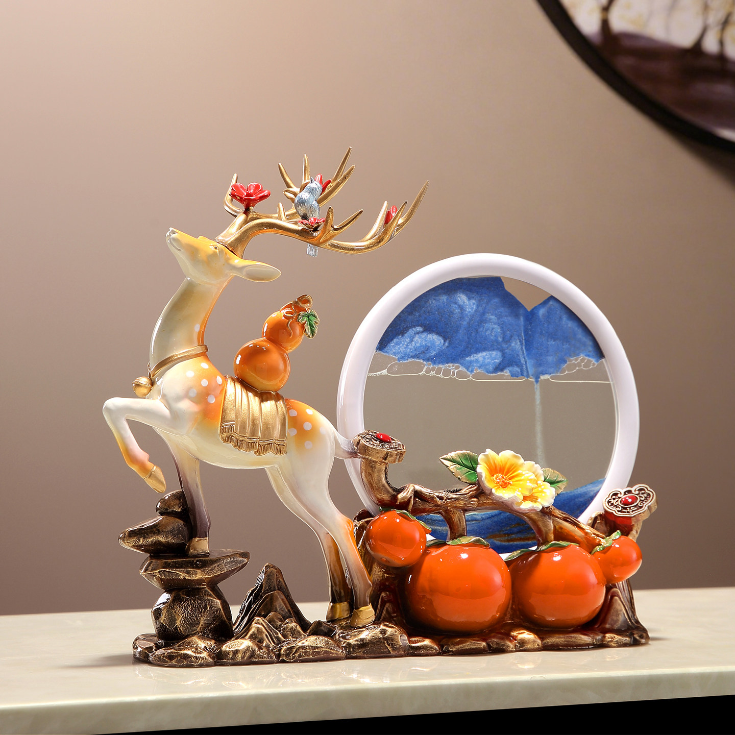 📚 乔迁之喜装饰招财鹿流沙画摆件客厅电视柜酒柜新房子乔迁新居礼物