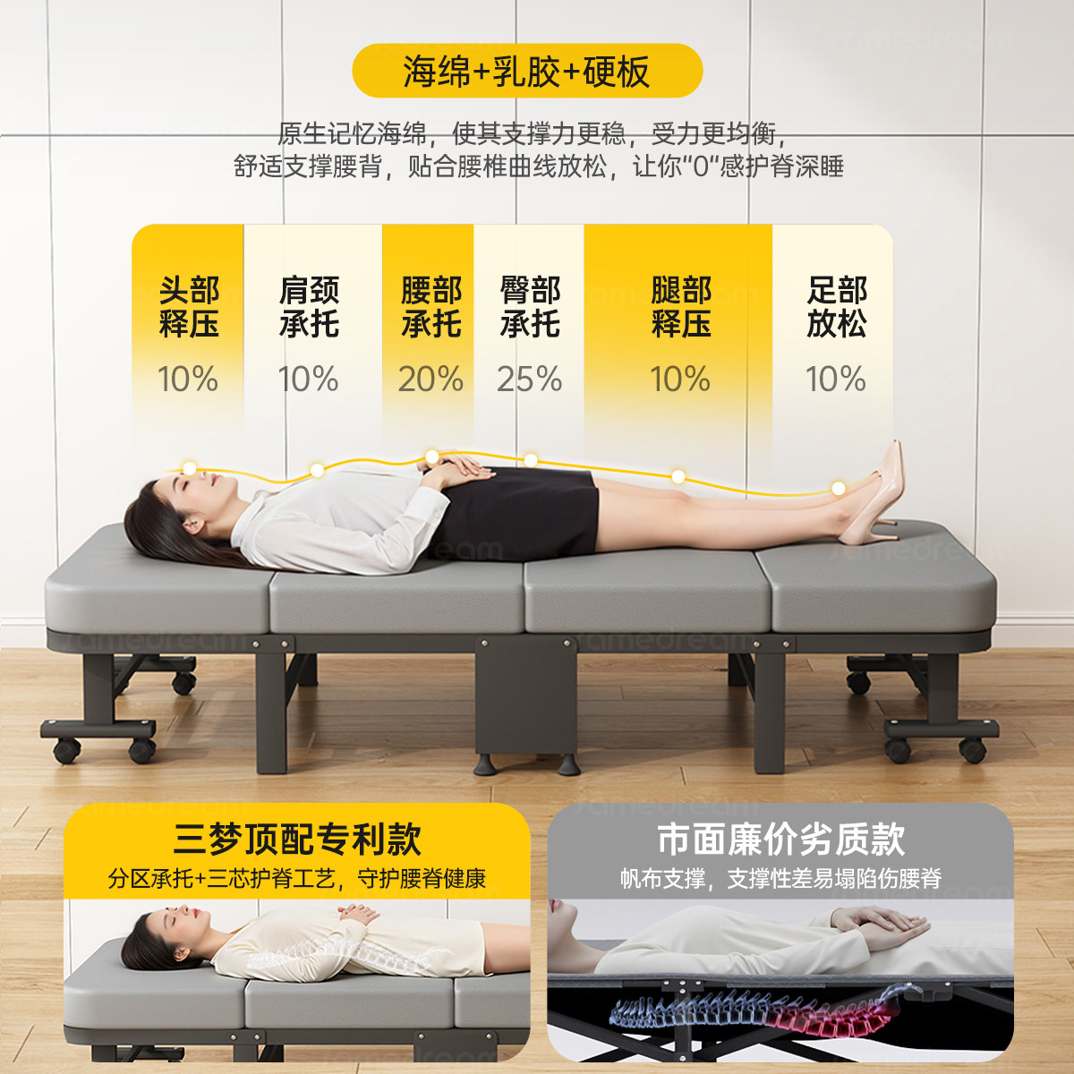 📚 办公室午休折叠床单人躺椅家用简易硬板医院陪护小行军床午睡神器