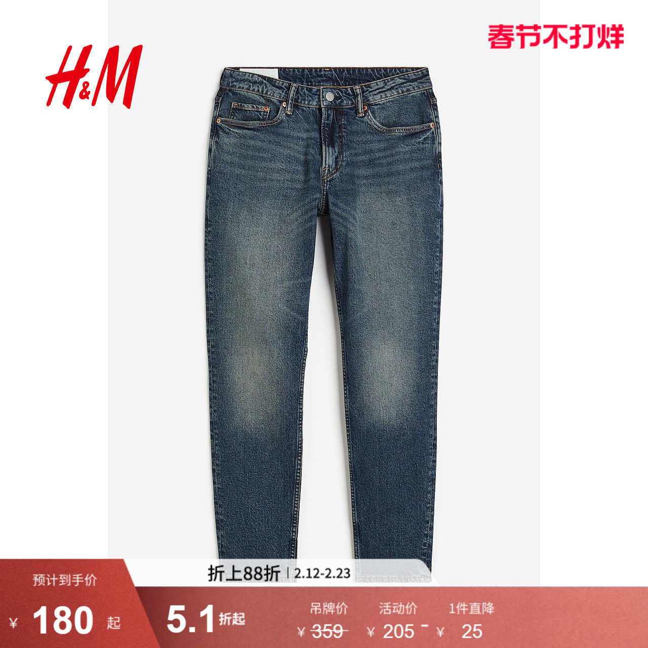 📚 HM男装牛仔裤春季新款合身美式中腰锥形休闲时尚洋气长裤0931747