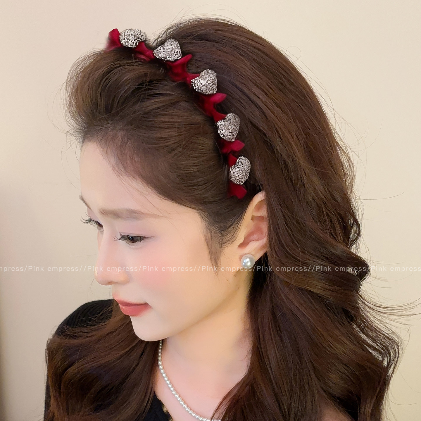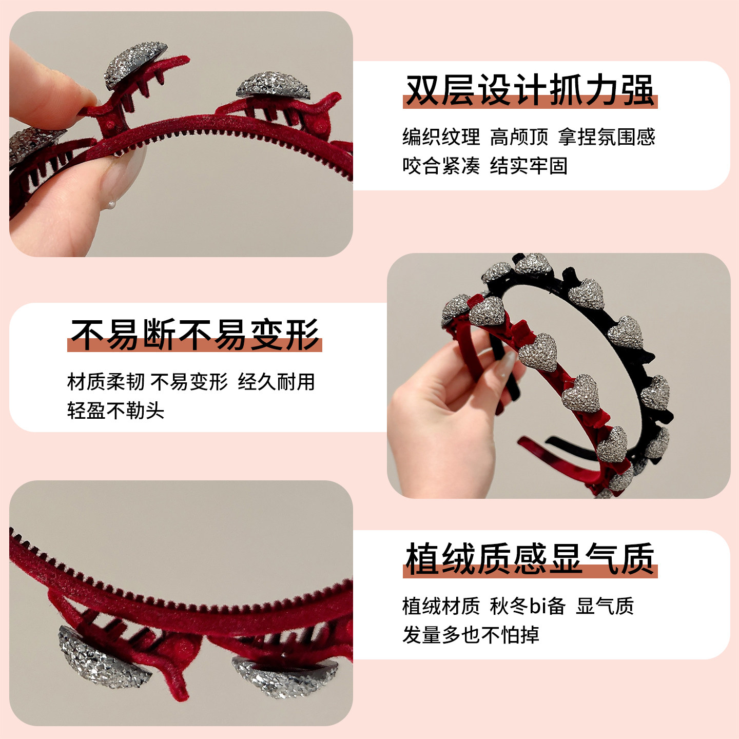 📚 新年植绒爱心编发发箍女刘海碎发整理神器高颅顶压发头箍红色发卡
