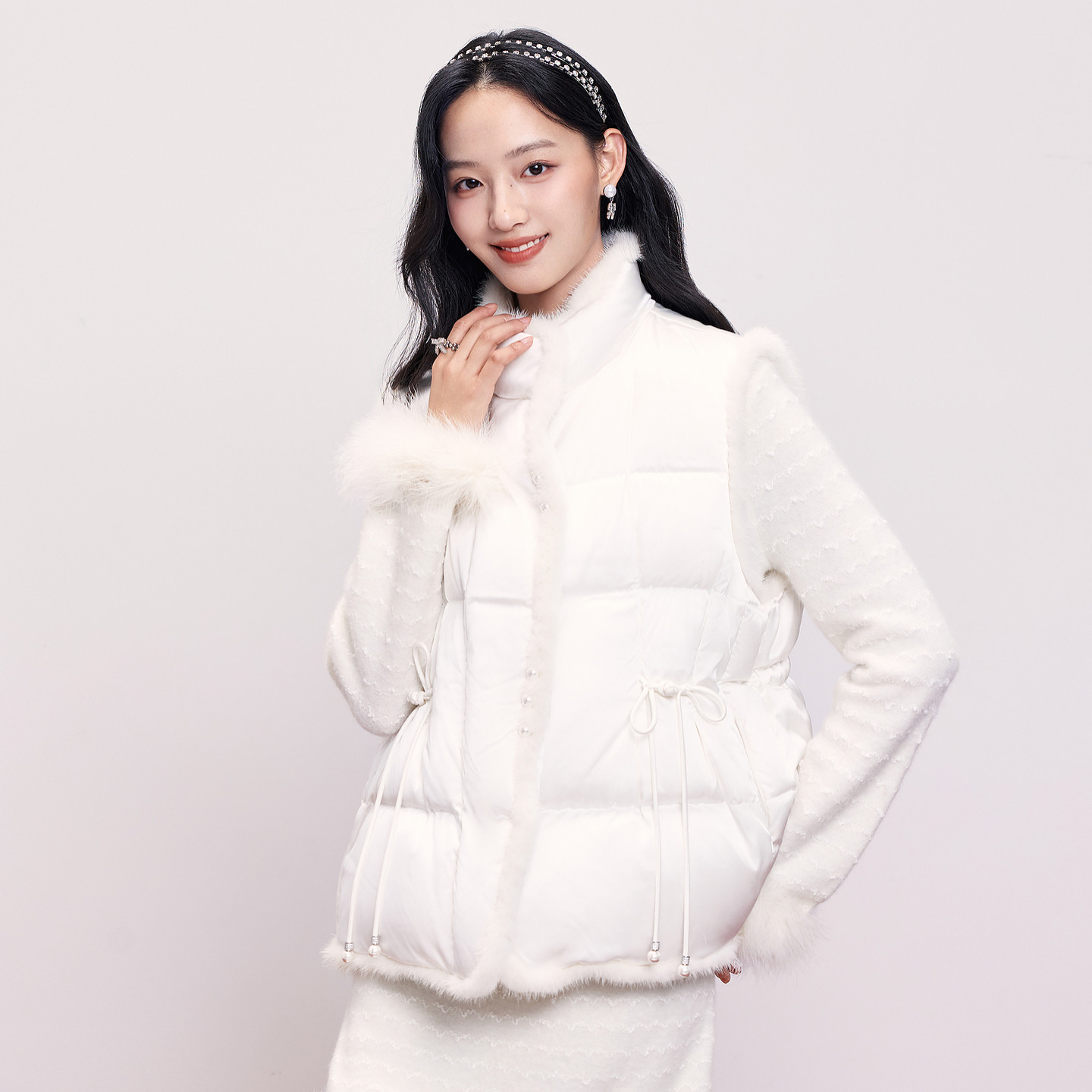 📚 【暖意轻中式】缎面醋酸羽绒服马甲外套DOUBLOVE贝爱2025冬季新款