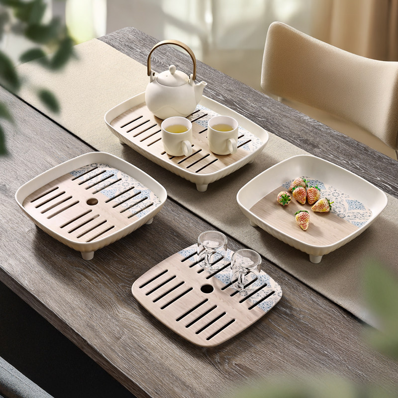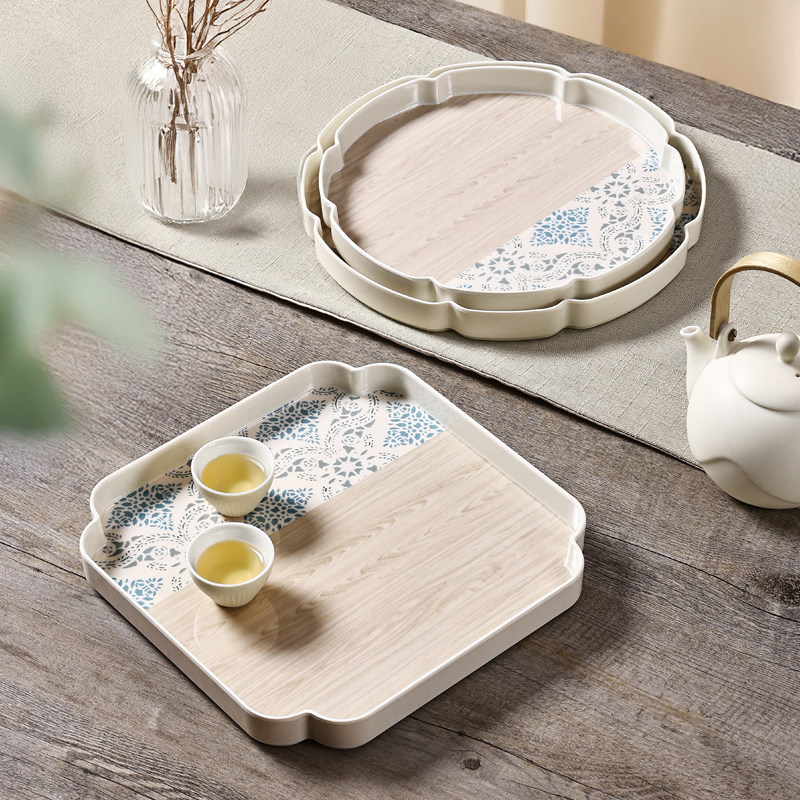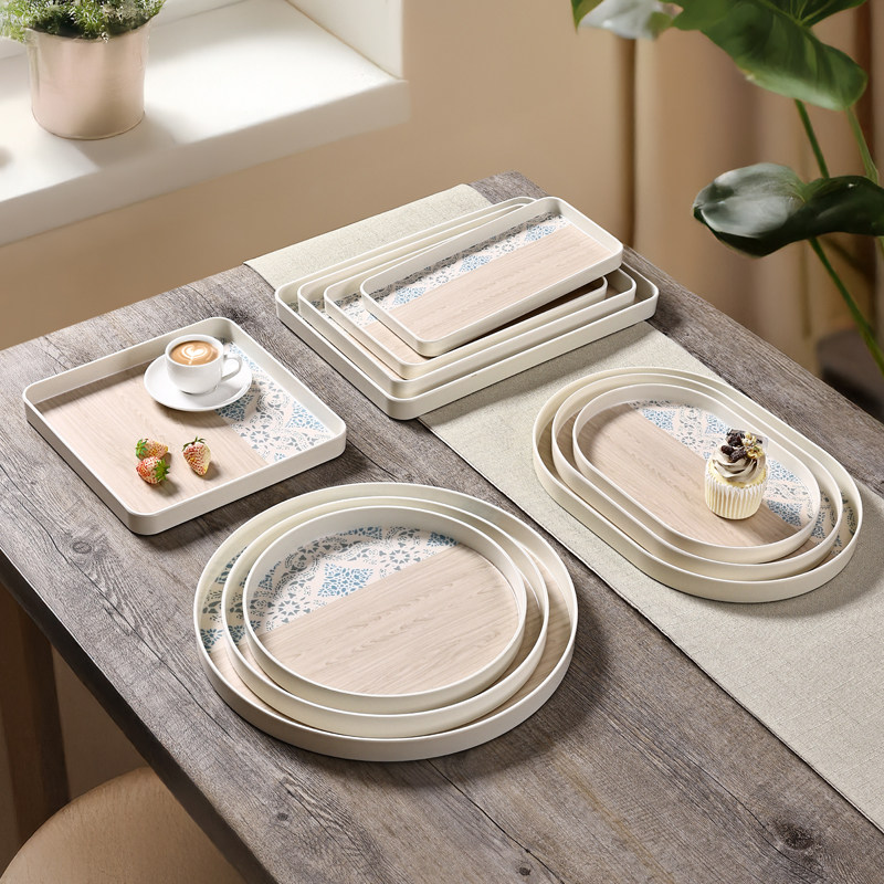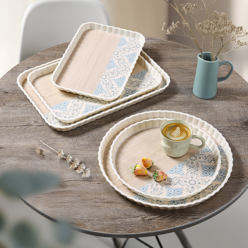 📚 希尔北欧家用长方形茶盘圆形蛋糕水杯早餐拼色仿古盘子放茶杯托盘
