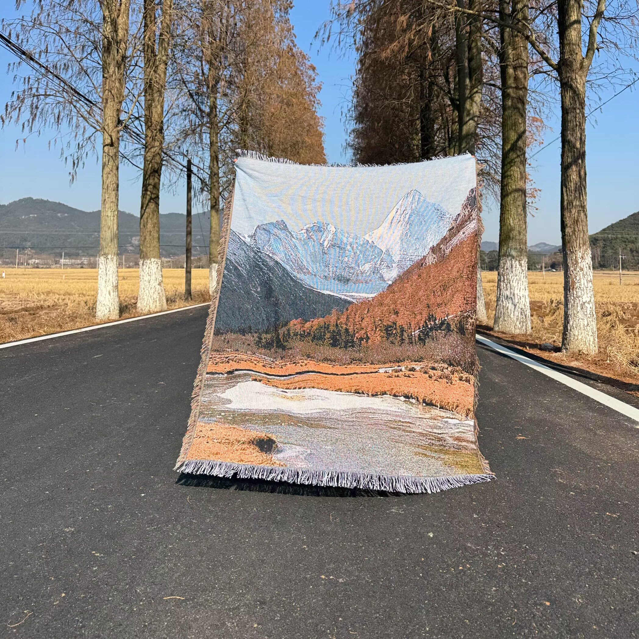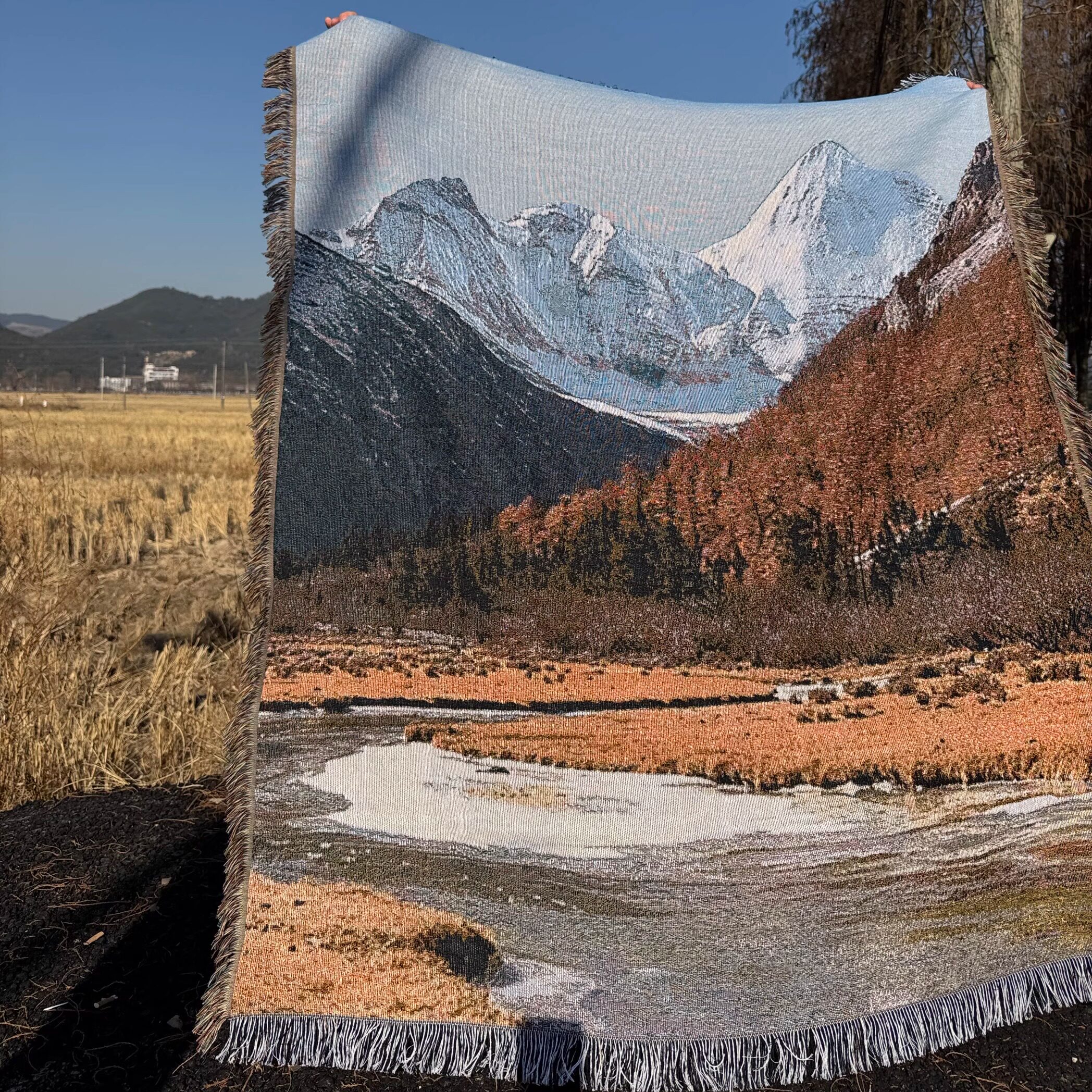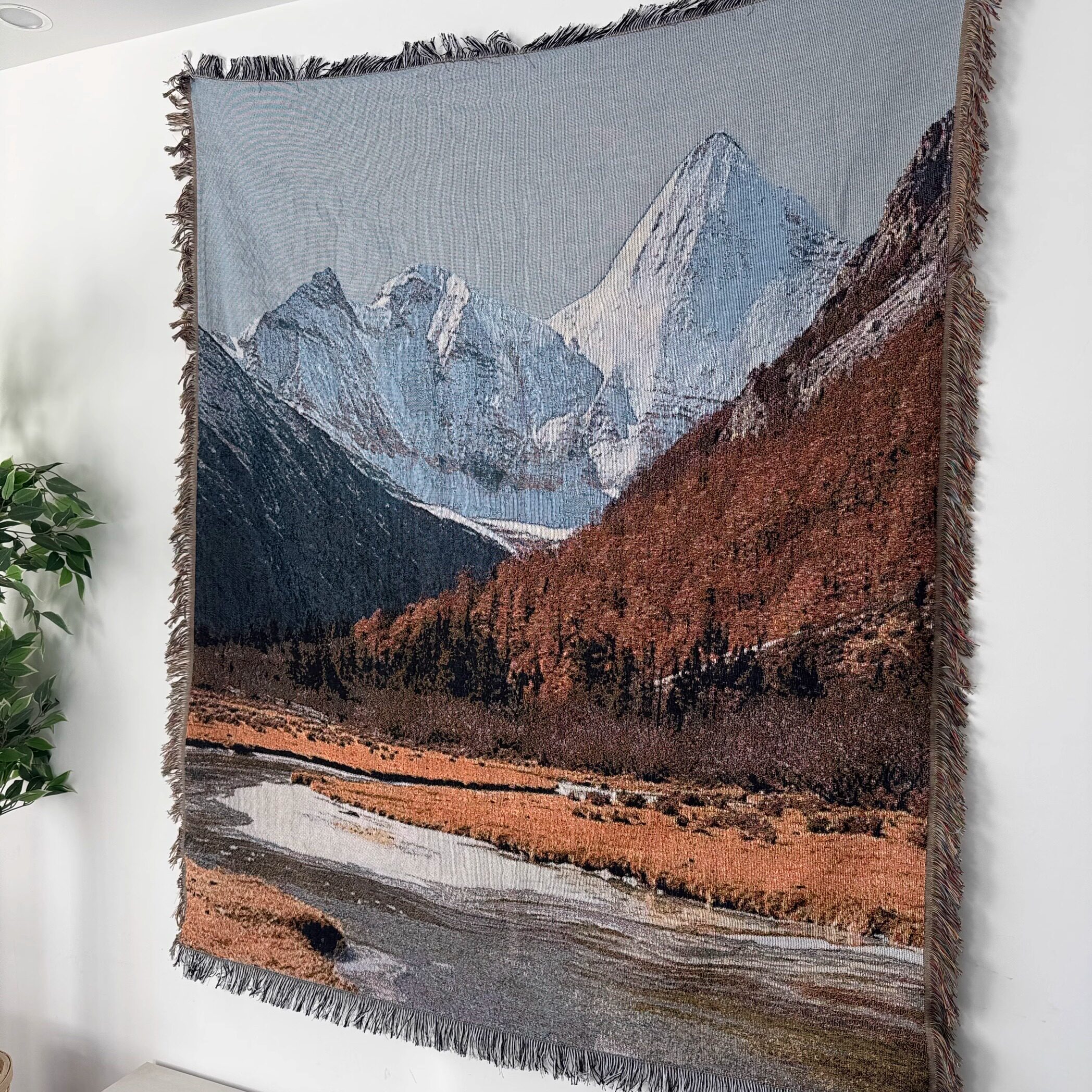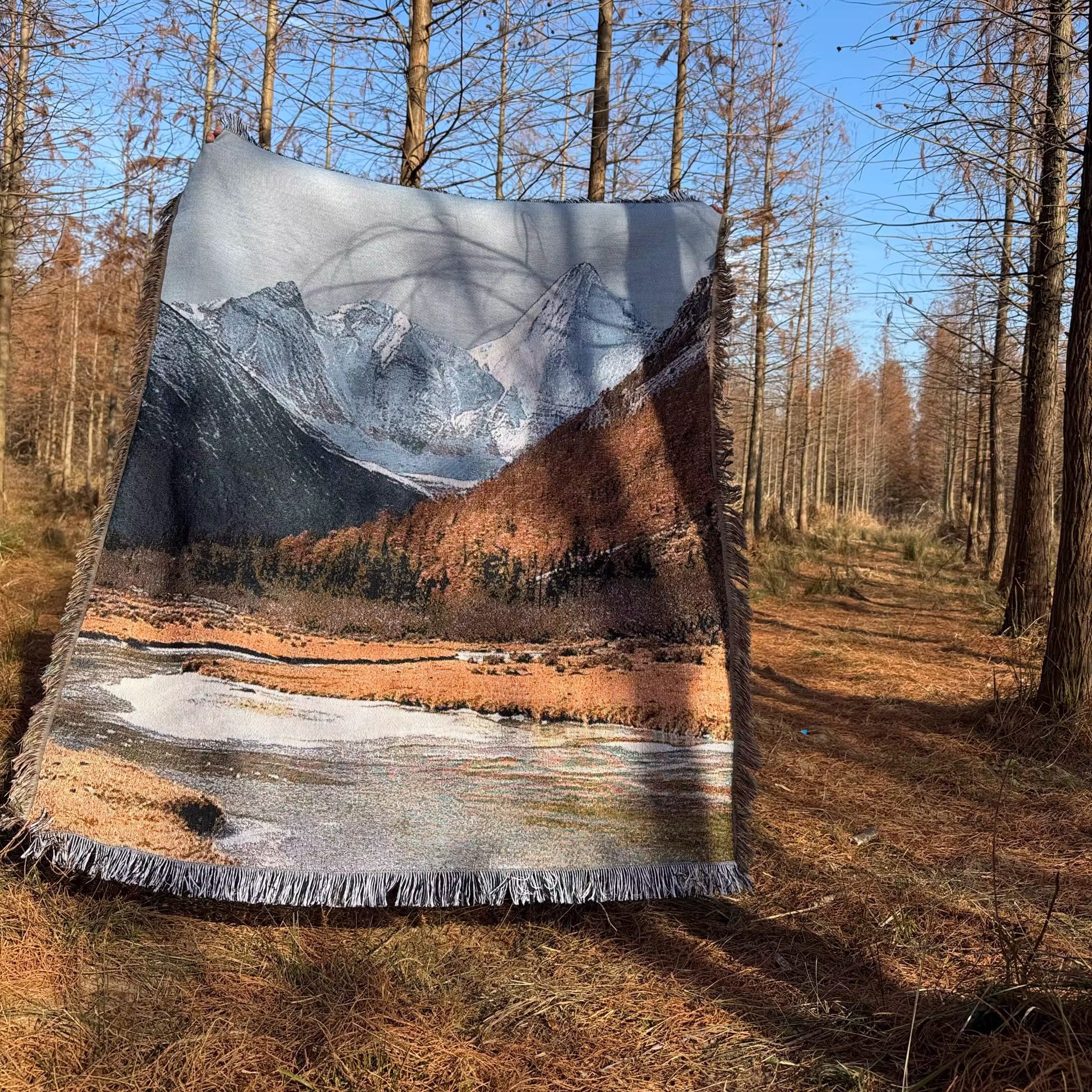 📚 艺术自然风光油画风景挂毯稻城亚丁秋景旅行雪山装饰毯DIY画框毯