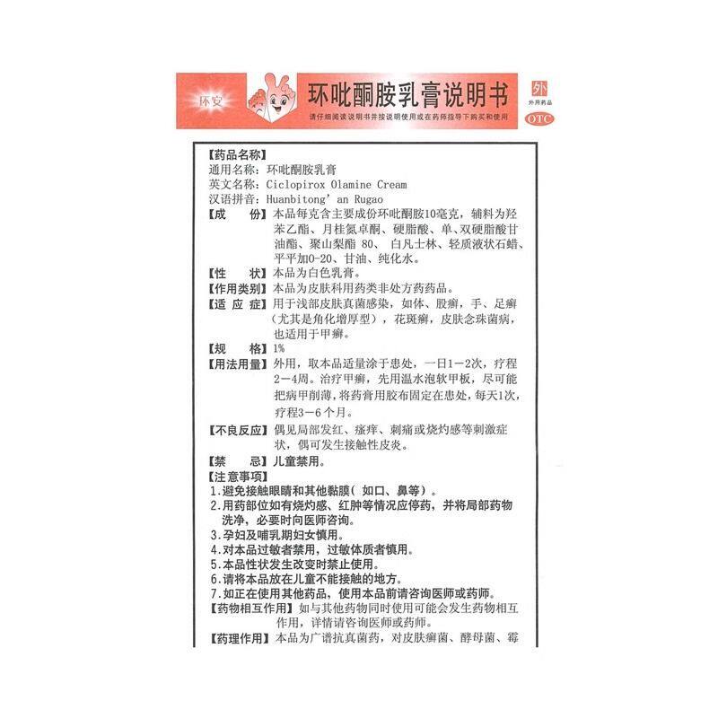 📚 环安环吡酮胺乳膏15g皮肤真菌感染体股癣手足癣花斑癣甲癣