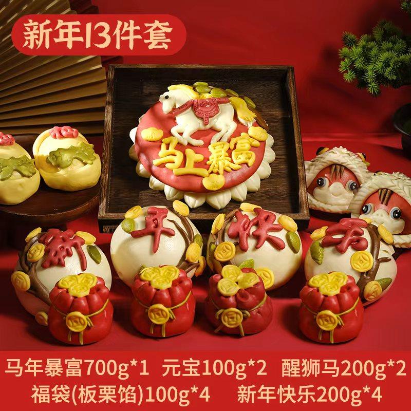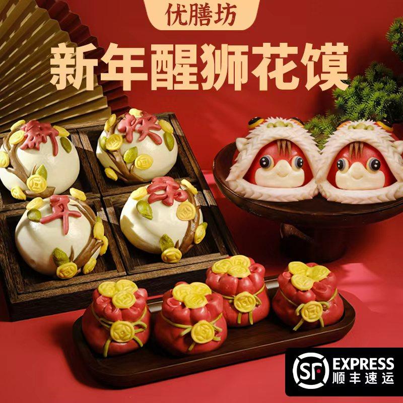 📚 马年吉祥醒狮馒头过年年货福袋金元宝传统年味面食山东花饽饽礼盒