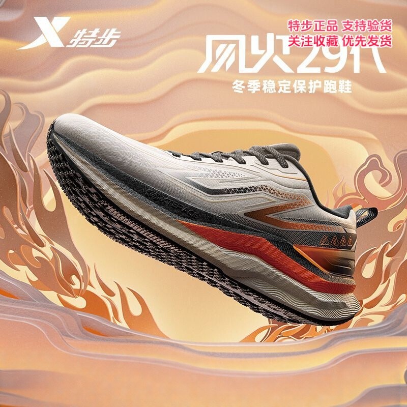 📚 特步风火29代跑步鞋男鞋2025冬季新款皮面减震运动鞋975419110006