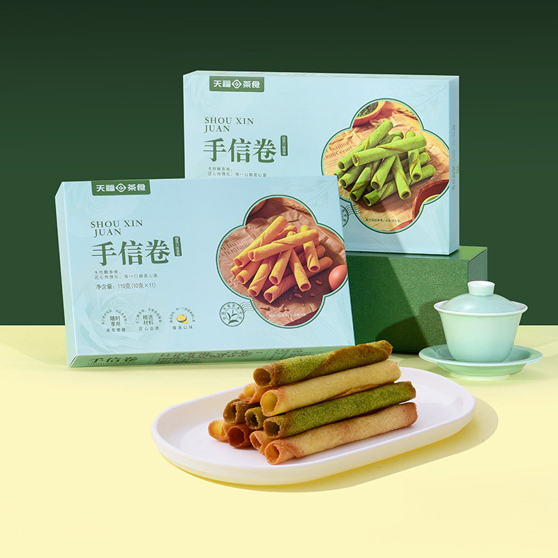 📚 天福茗茶 手信卷抹茶榴莲口味蛋卷 下午茶点心休闲零食盒装110g