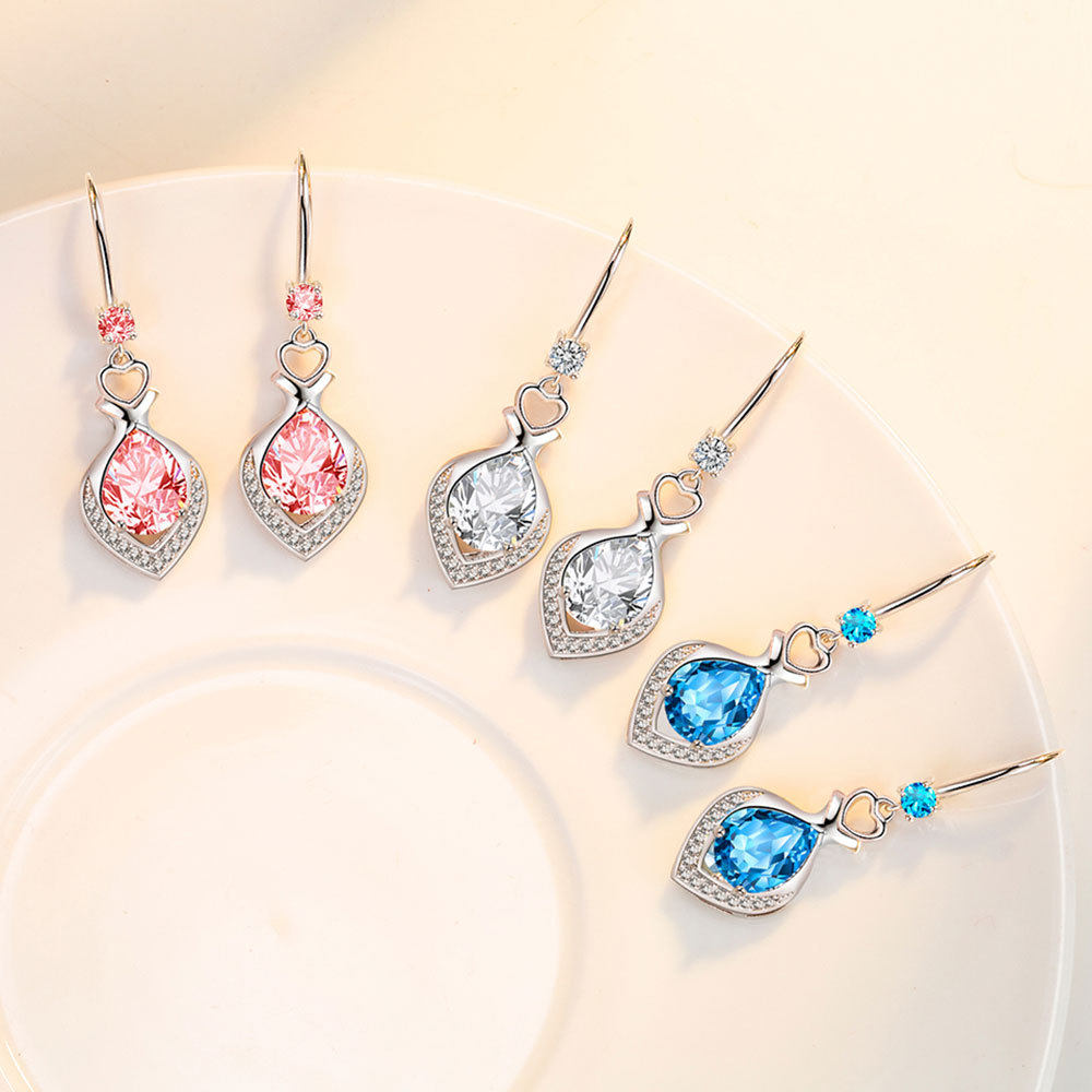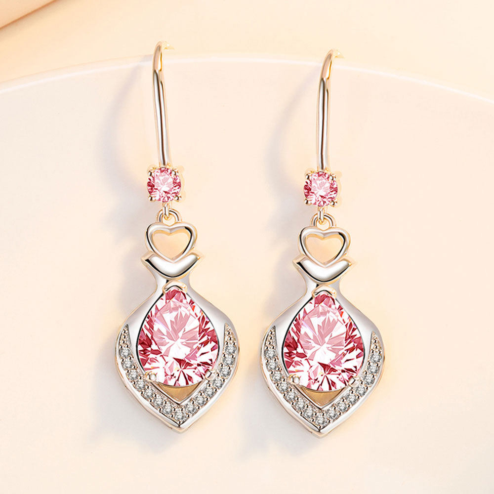 📚 S925纯银爱心耳环女式时尚镶嵌锆石耳钉防过敏不掉色个性流苏耳坠